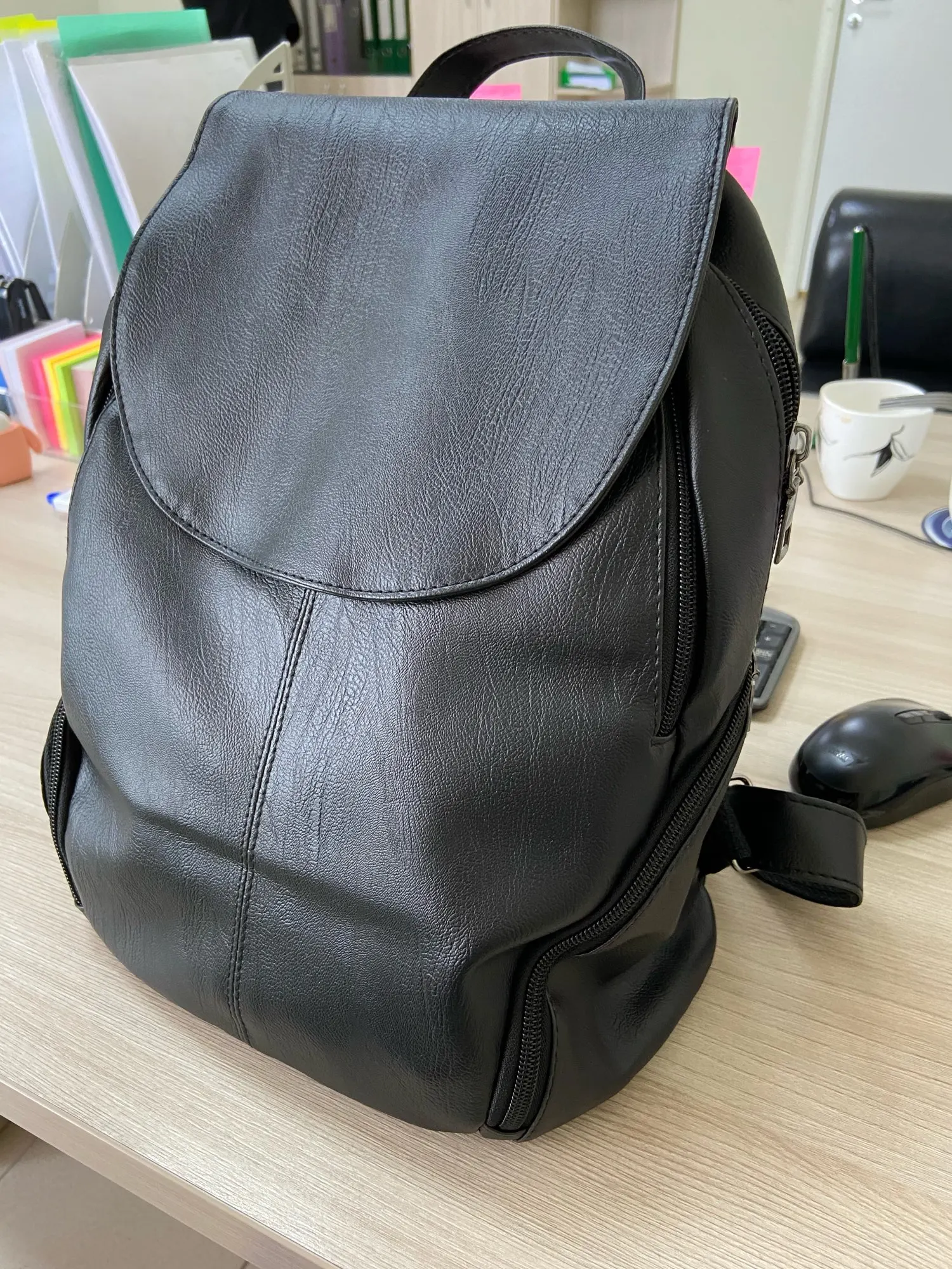 Отличный рюкзак! В Москве получила на 2 или 3 день после заказа. Очень вместительный, уже был такой, отходила год. Материал не кожа за такую стоимость, но хорошего качества. Единственный минус у него, подклад рвётся и замки расходятся иногда, нужно поджать немного.