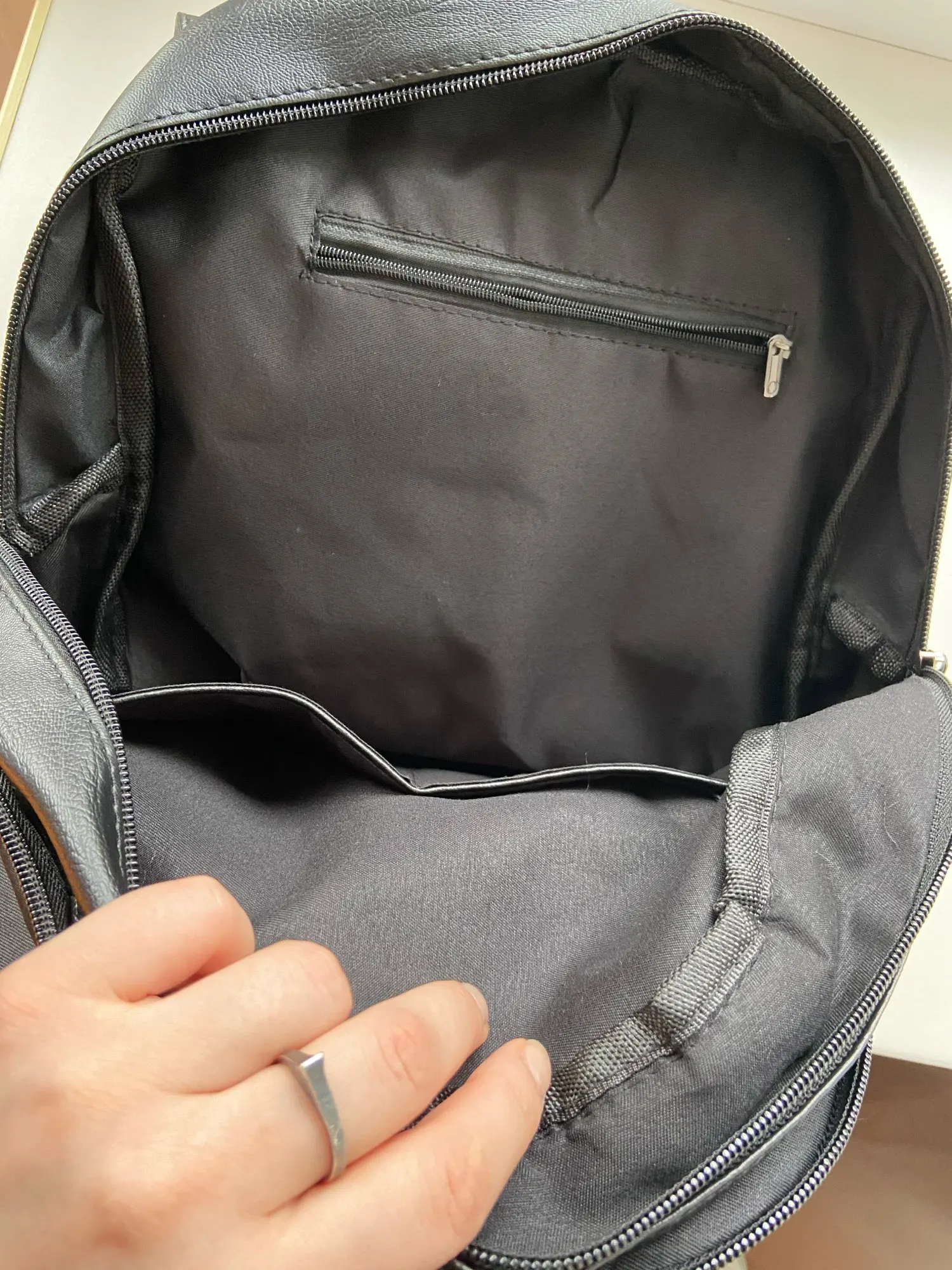 Рюкзак хороший, пришел за неделю. Очень удобный, много отделений. Понравилось что подкладка не из скользкого материала. Не понимаю почему некоторых возмущает что рюкзак из дерматита, за такую цену будет явно не кожа.
