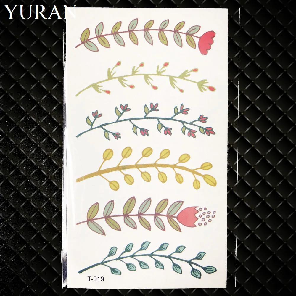 Красочные Временные Тату-наклейки с листьями, цветок, Женский декор, руки, тату, буквы, маленький браслет, буквы, искусственные тату, слова