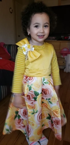 Платье очень красивое, но разочаровывающий размер, который я заказал для 3-летней девочки, и кажется, что это 3 месяца.