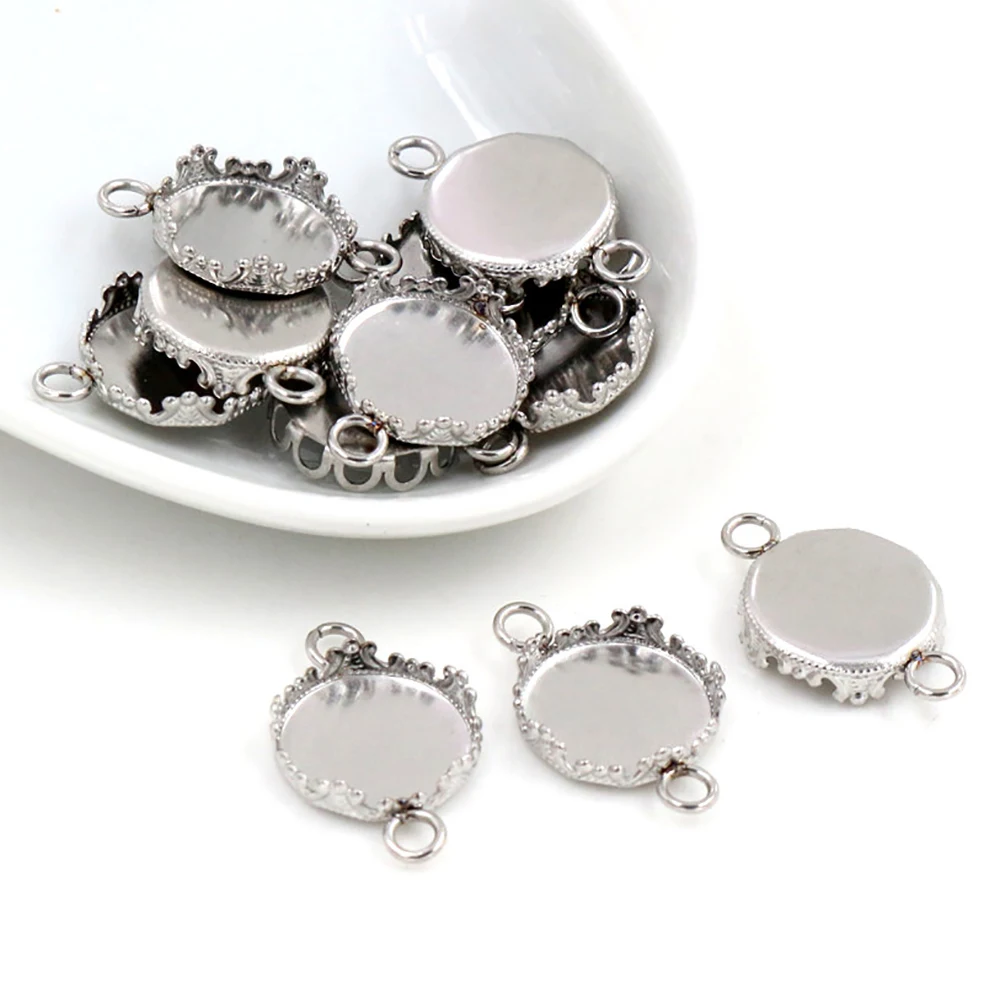 (Не выцветает) 12 мм 20 шт из нержавеющей стали Croen Cameo Настройки Кабошон База Подвески кулон высокое качество Connector-T5-41