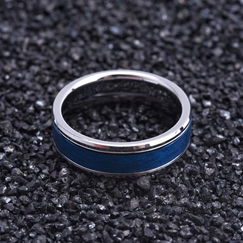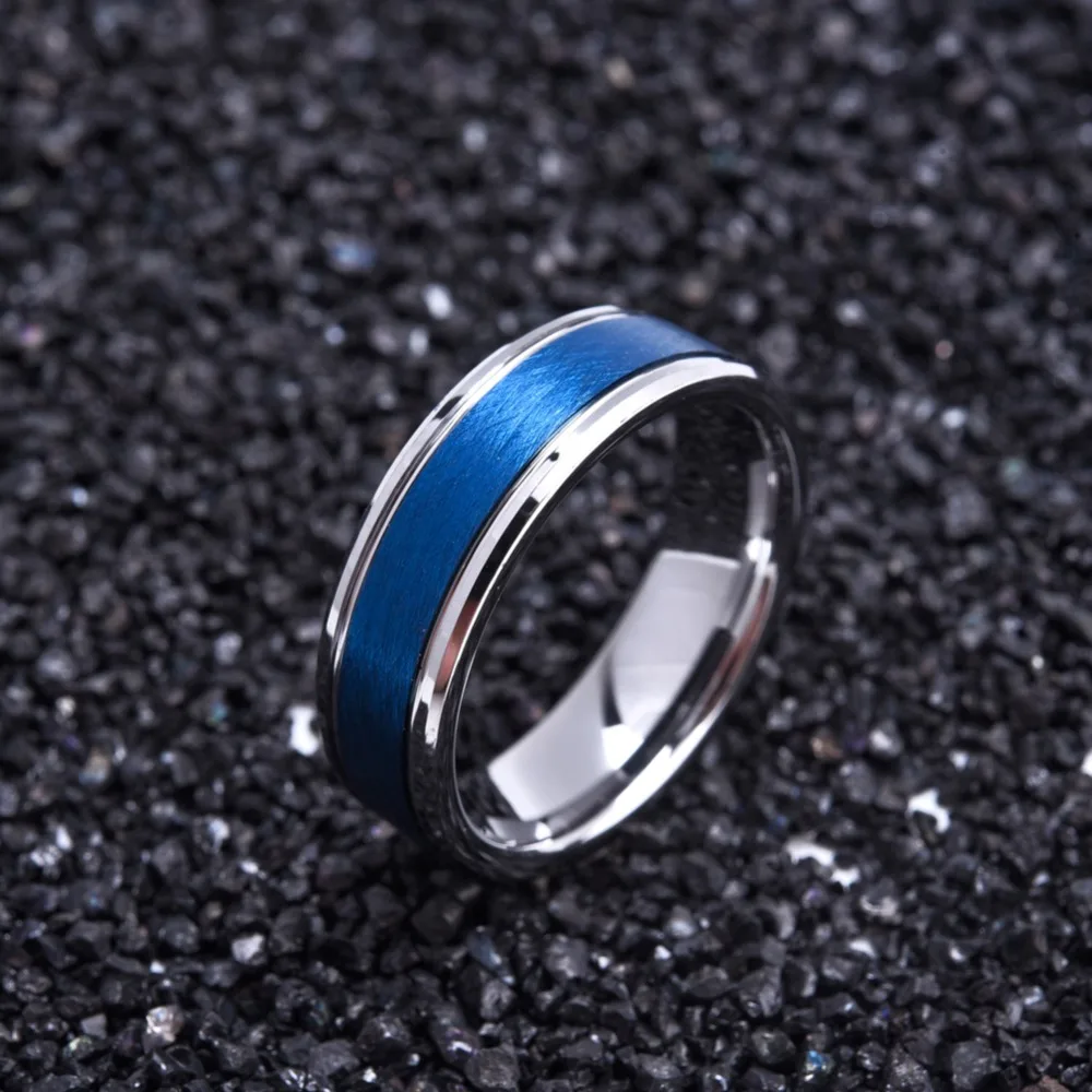 Кольца мужские из карбида вольфрама, Классические однотонные обручальные кольца 7 мм синего цвета с беспорядке, европейские размеры