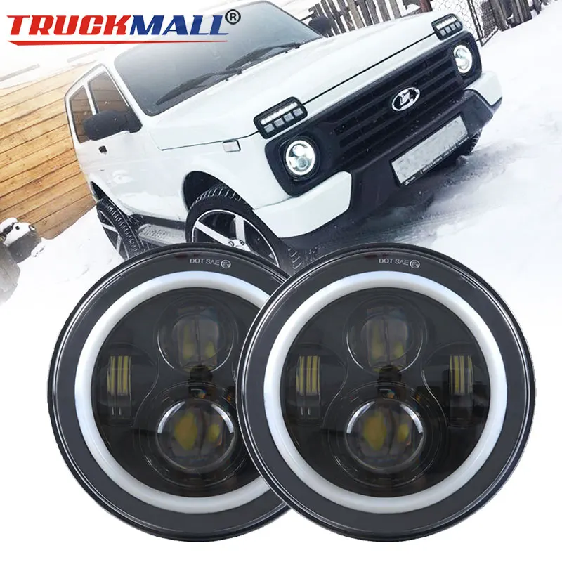 7-дюймовые Светодиодные ДХО H4 на H13 УАЗ фары Дневные ходовые огни гало кольцо ангельский глаз поворотник для Лада 4x4 Урбан нива