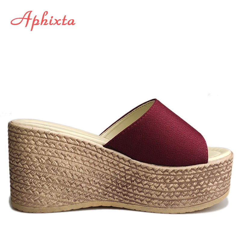 Женские шлепанцы на танкетке Aphixta, летние, черные, с открытым носком