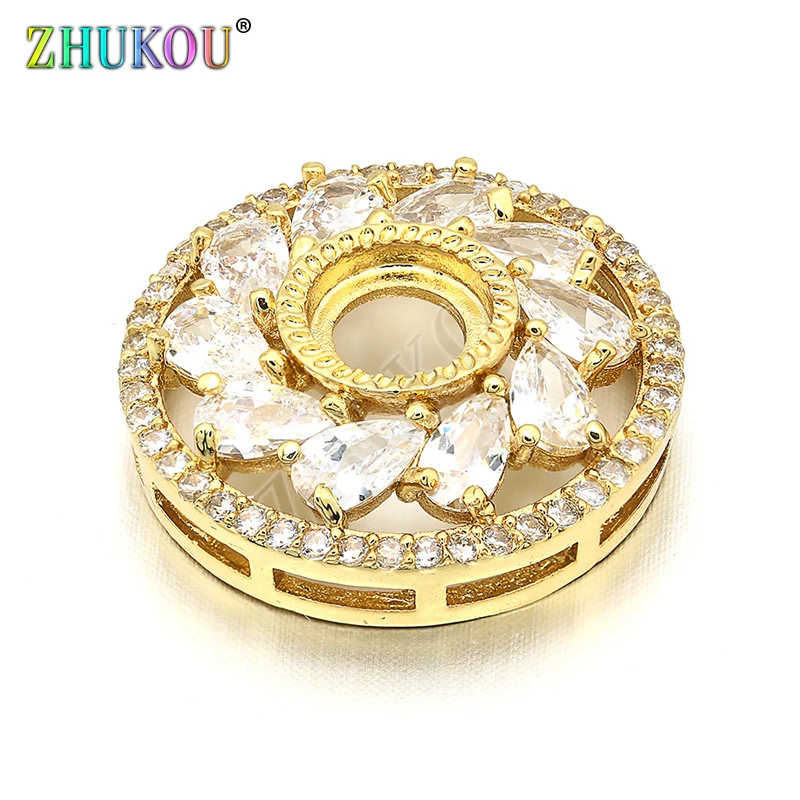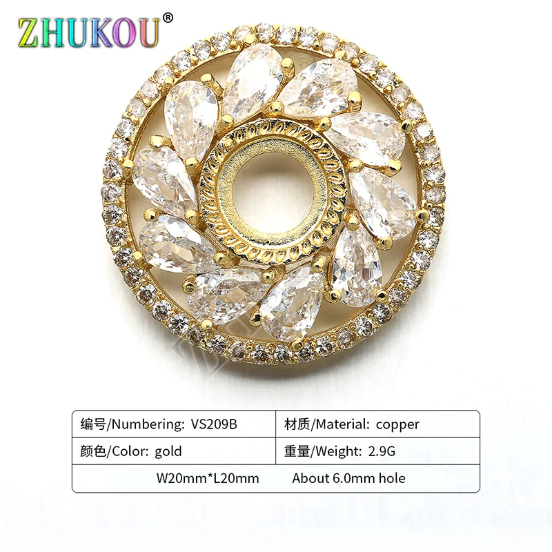 Латунный кубический цирконий ручной работы, круглый цветок, фотоаксессуары для ювелирных изделий, отверстие: 6 мм, Модель: VS209, 20 мм