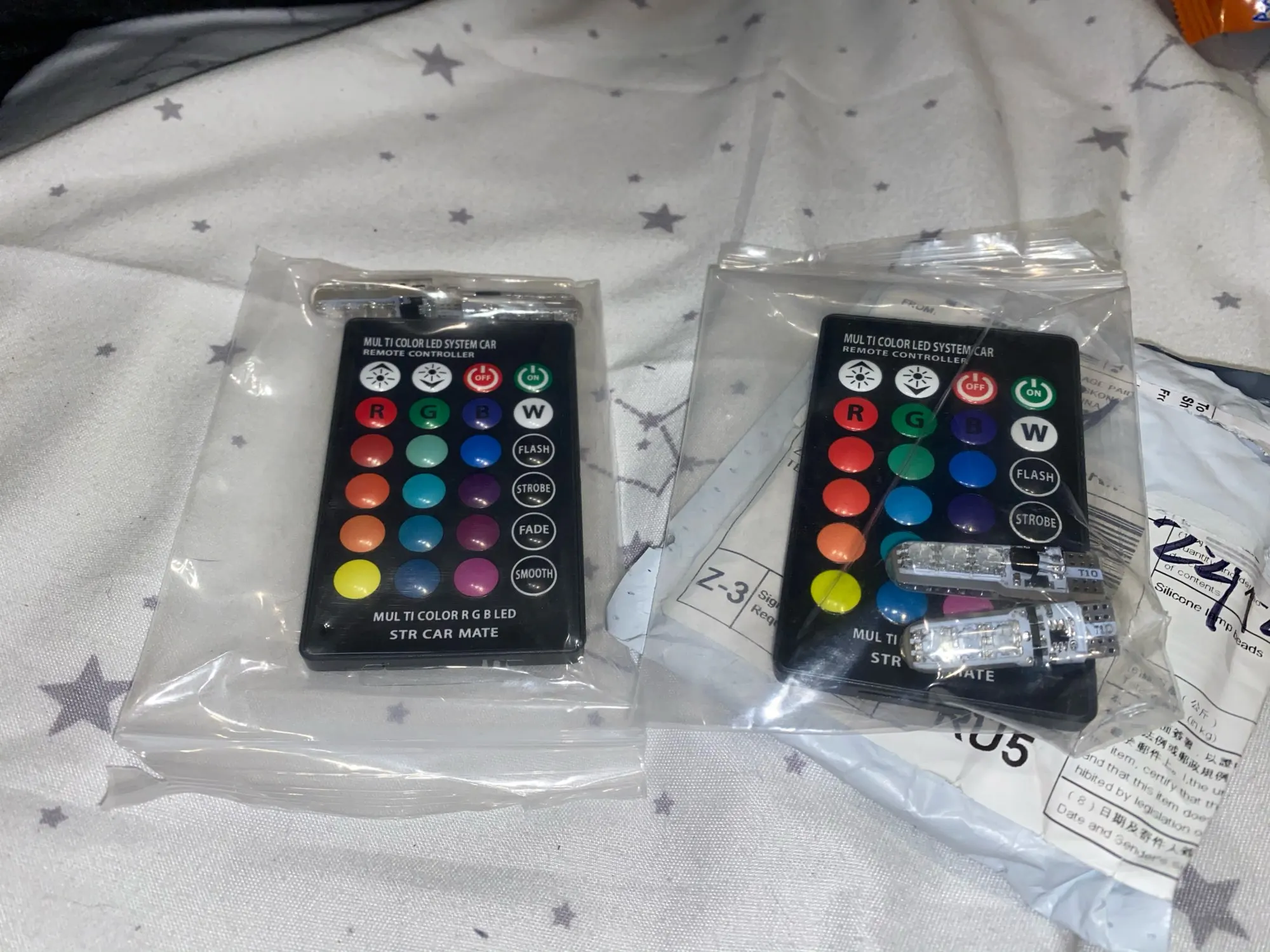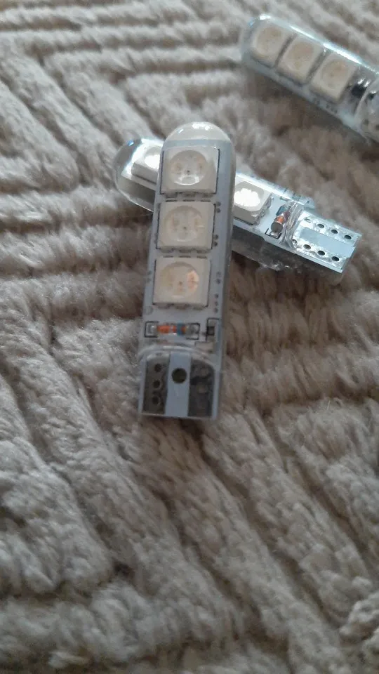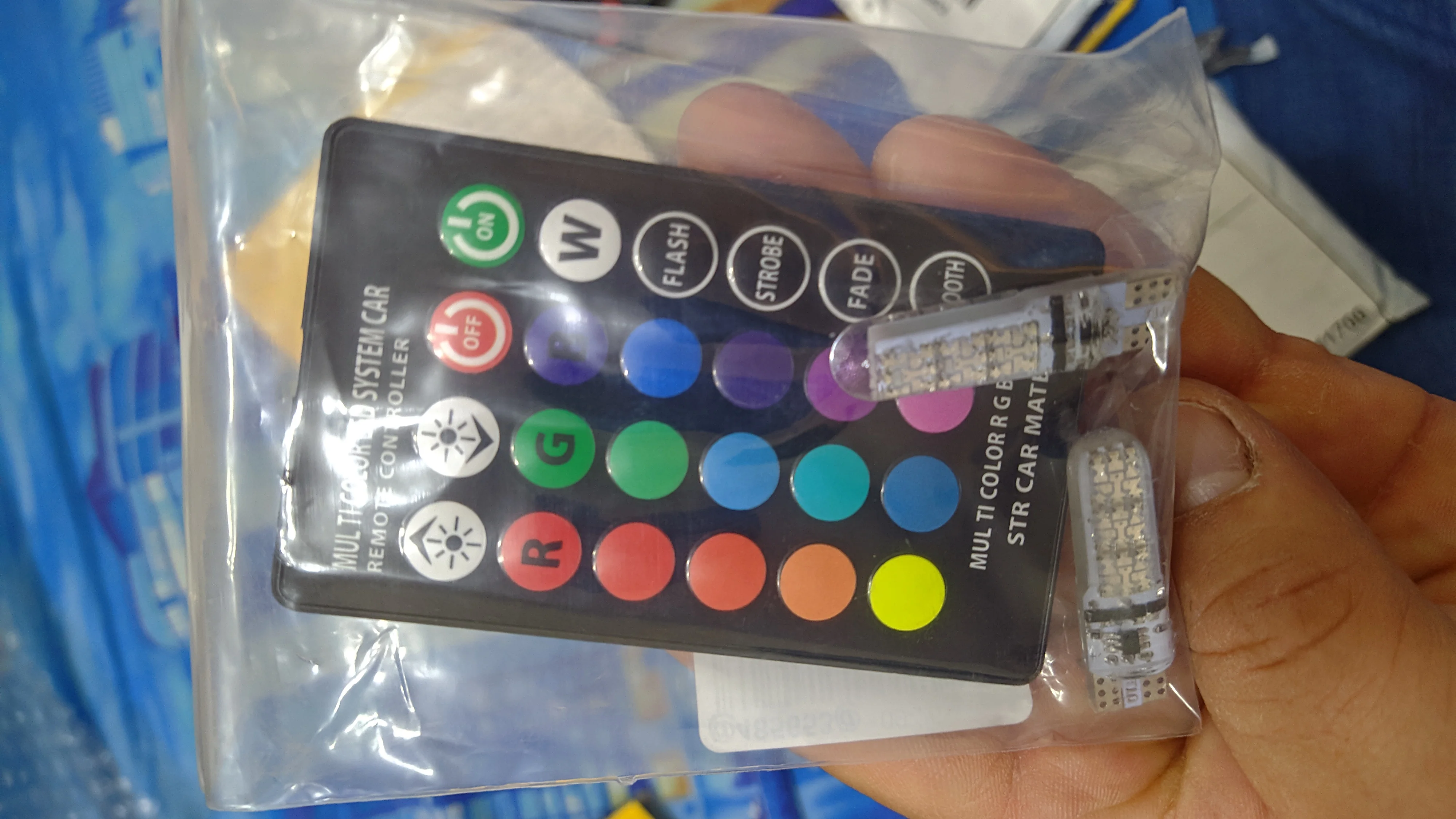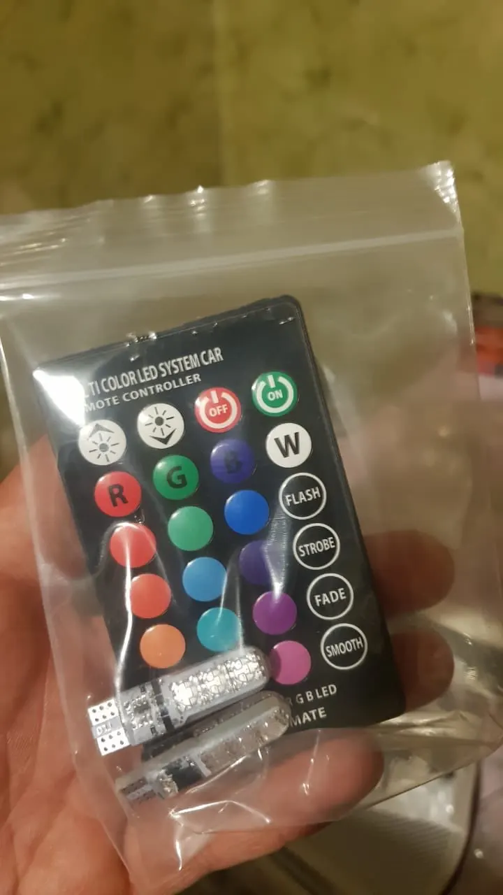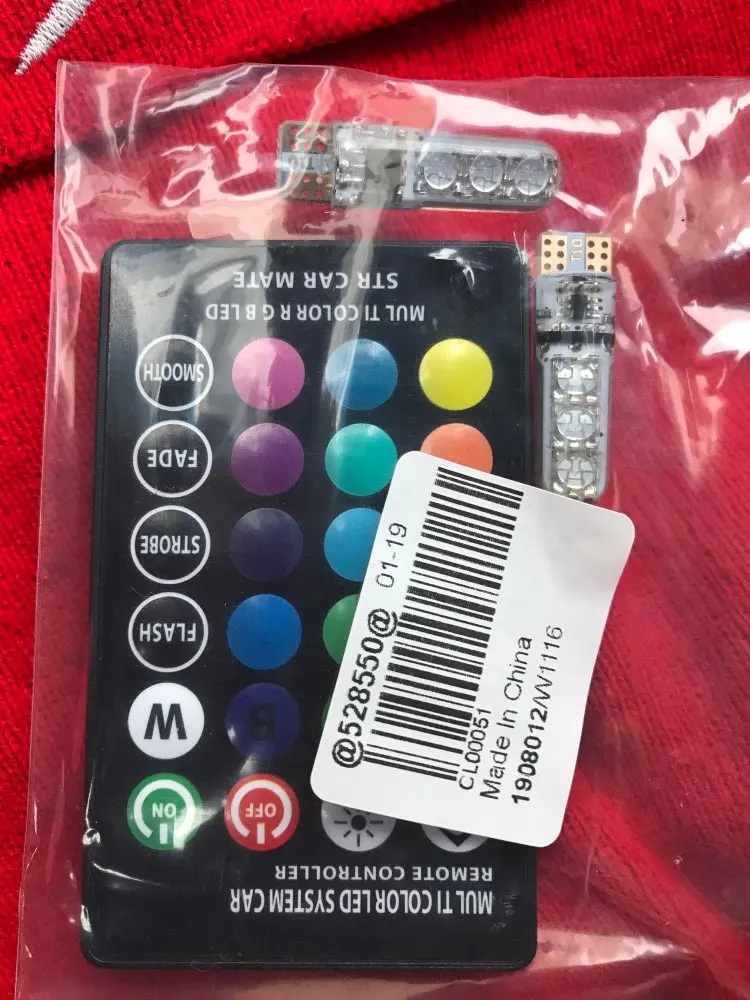 Лампы пришли в обычной упаковке, пупырчатый пакет. Лампы целые без повреждений. Проверил в работе, все режимы функционируют, цветов много, яркость тоже регулируется, есть мигание. Пульт остался от предыдущей покупки. Лампы имеют полярность, если не горит просто переверните лампу. Пульт работает вблизи от лампы. Переключить режим цвета лампы из салона а/м не получится. Колба лампы в селиконовой оболочке.