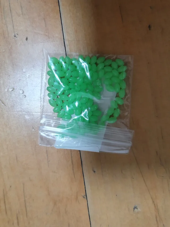 Получил только 98 штук, но, как и бусы, будет использоваться для рыбалки на пляже в ночное время. Бусины с отверстиями не такие большие, поверьте, пока 0,50 не забудет.