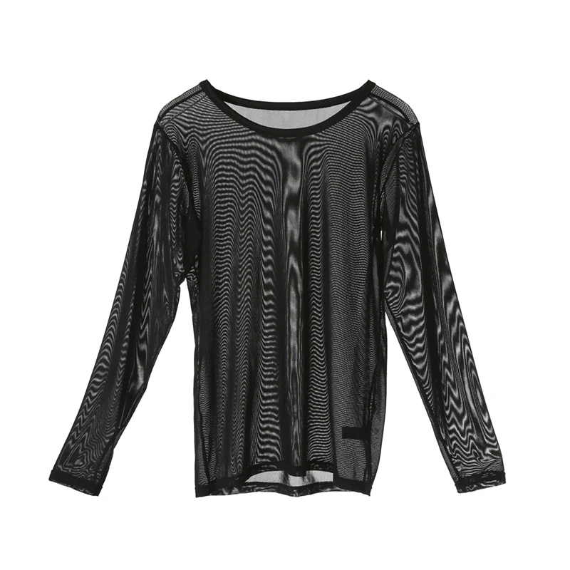 Футболка мужская с длинным рукавом, пикантная Прозрачная облегающая футболка из прозрачной сетки, с круглым вырезом, для бодибилдинга, лето