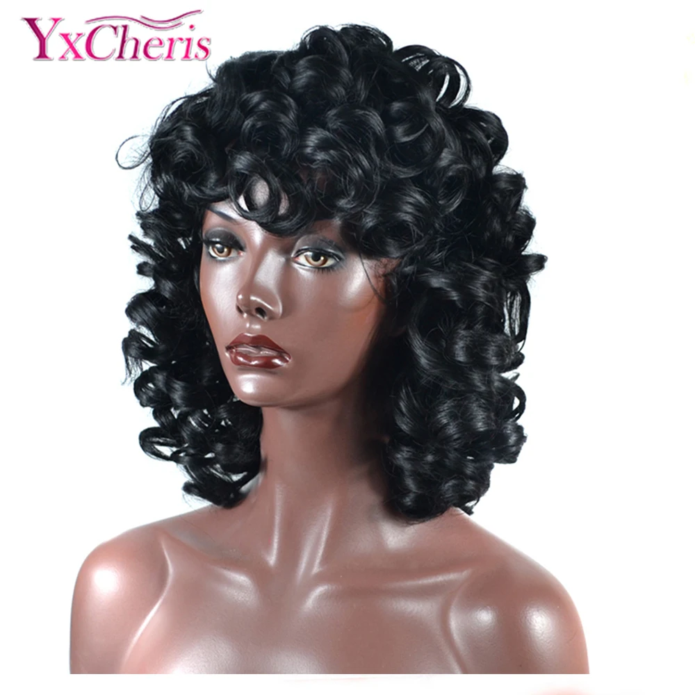 Парик YxCheris афро, синтетические волосы, Термостойкое волокно, натуральные черные короткие вьющиеся волосы, парики для чернокожих женщин