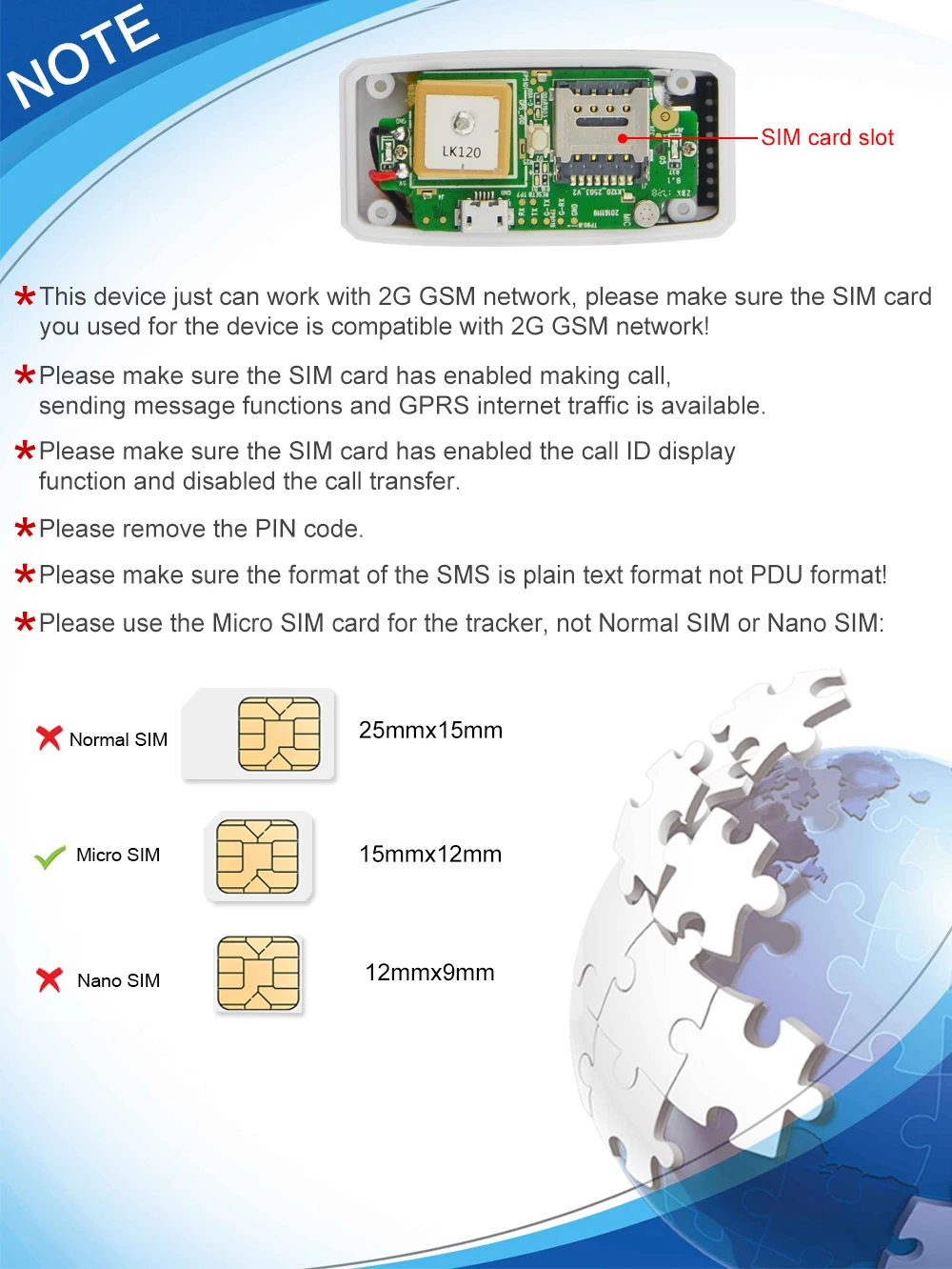 1. Наш GPS-трекер TK911 может работать только с сетью 2G GSM, он не поддерживает сети 3G 4G или 5G. Если ваша SIM-карта 3G 4G также поддерживает сеть 2G, ее можно использовать. Но если в вашей стране сеть 2G закрыта, мы предлагаем вам выбрать наш 3G 4G GPS GSM трекер.