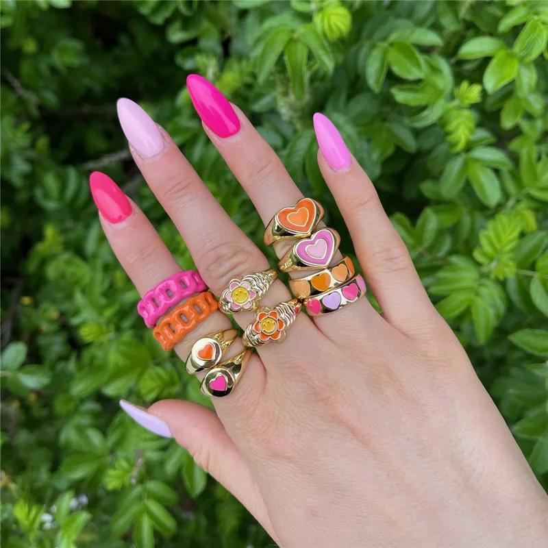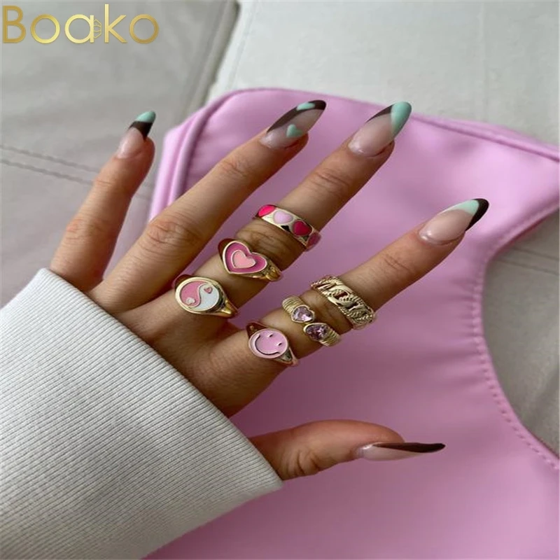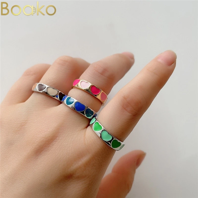 BOAKO новые Ins творческий простой красочные двойной Слои любящее сердце эмаль кольцо в винтажном стиле в виде сердца кольца для женщин, модные ювелирные изделия для девушек