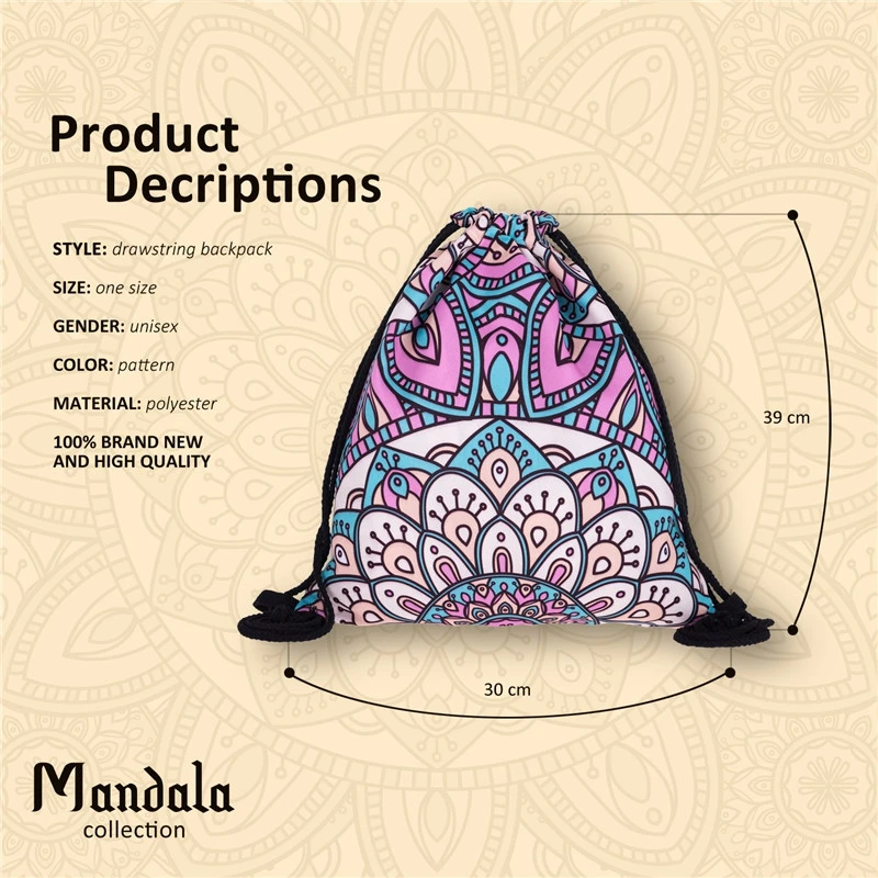 Новый Модный женский рюкзак Мандала с 3D принтом для путешествий, женская сумка на шнурке mochila