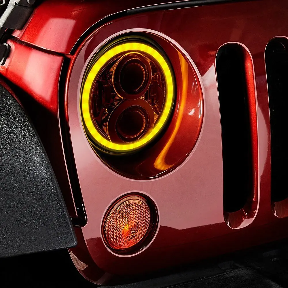 Для Wrangler JK TJ светодиодные фары 120 Вт 7 дюймов светодиодные фары Белый DRL желтого цвета сигнала Ангельские глазки огни для Jeep JK H1 H2