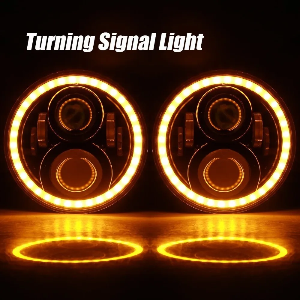 Для Wrangler JK TJ светодиодные фары 120 Вт 7 дюймов светодиодные фары Белый DRL Янтарный сигнал ангельские глазки для Jeep JK Hummer H1 H2