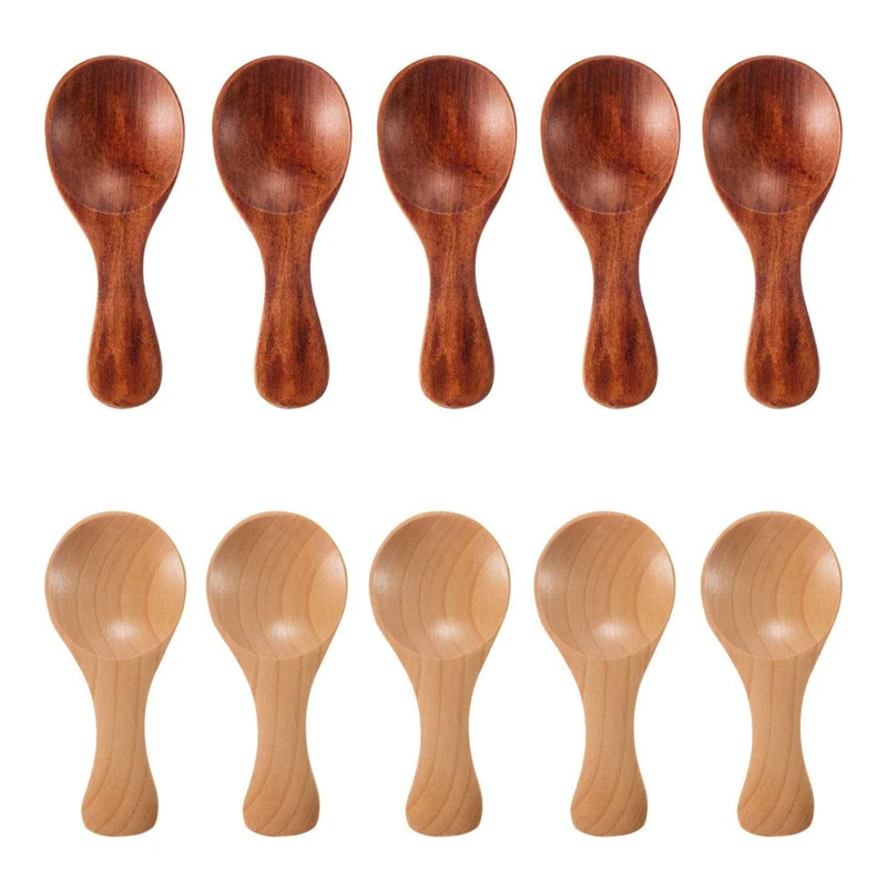Деревянные ложки мини-кофейные чайная ложка, ложки для соли, емкость для приправ, деревянные кухонные ложки с короткой ручкой, 10 шт.