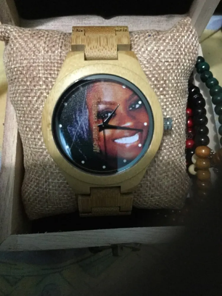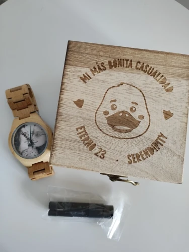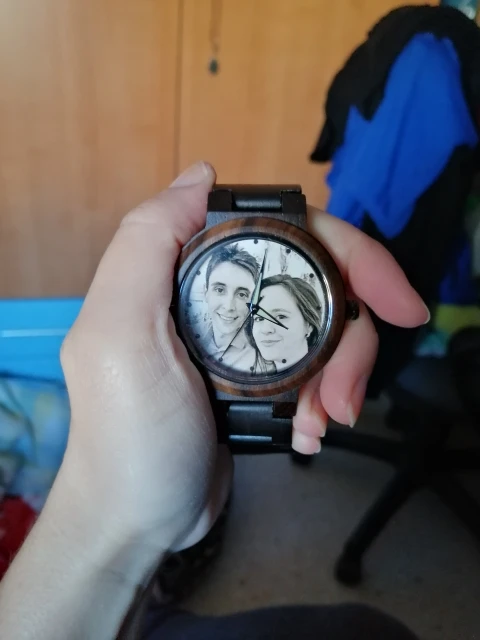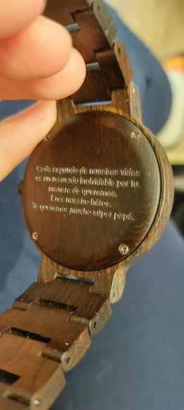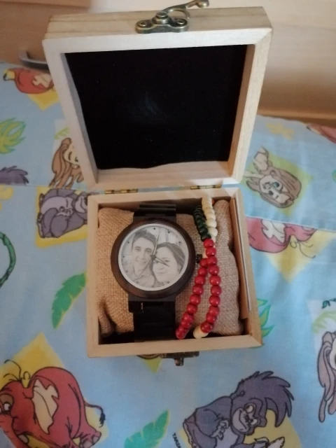 Это здорово! Я не представлял, что результат будет таким хорошим. Красивая фотография, и я попросить продавца гравировать на задней части часов и идеально! Я очень рад, я обязательно повторю, потому что доставка была очень быстрой. Я сделаю еще один подарок. Мне очень понравился опыт, и продавец отличный. Возьмите все аксессуары, чтобы зафиксировать ремень, все, что я надеюсь, это хорошее оборудование, и оно прослужит мне долго! Следует отметить, что сфера очень большая, больше подходит для мужчин, чем для женщин