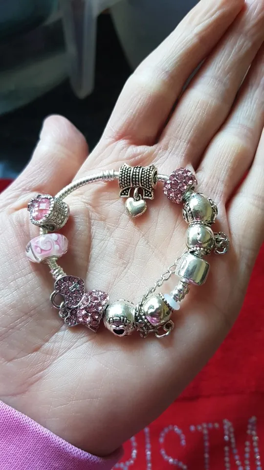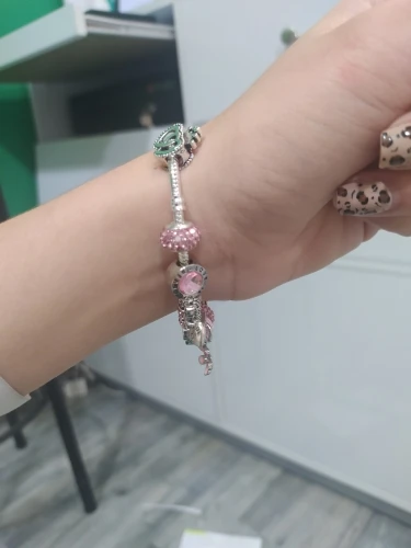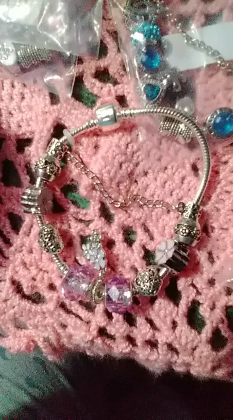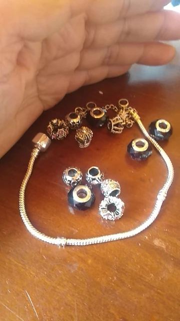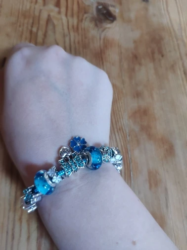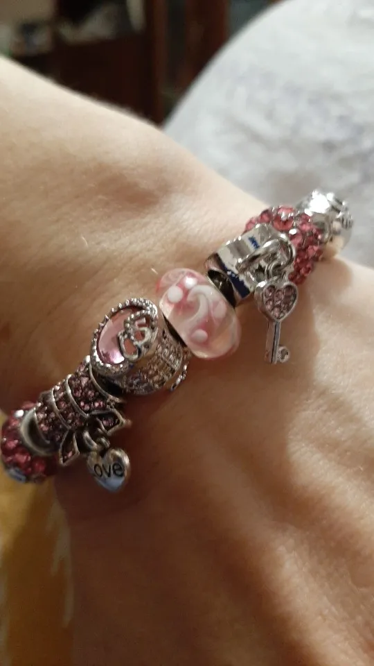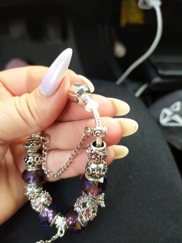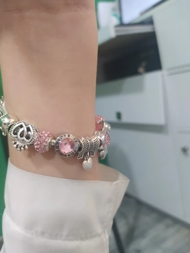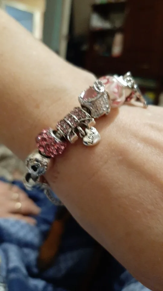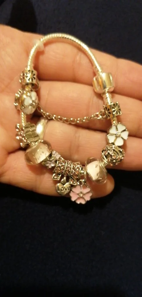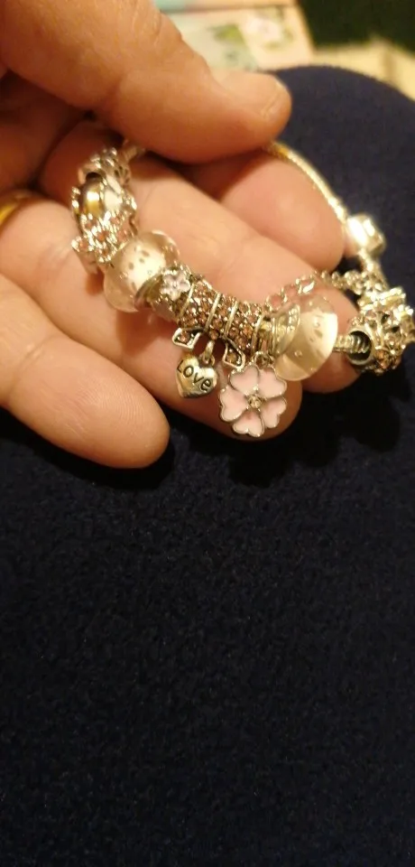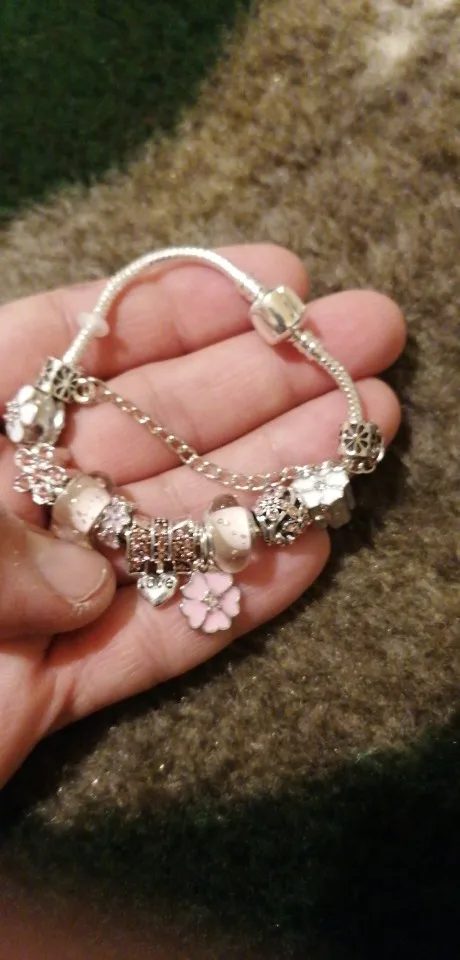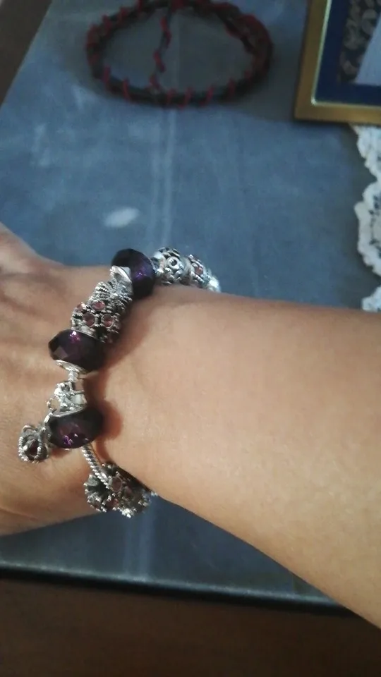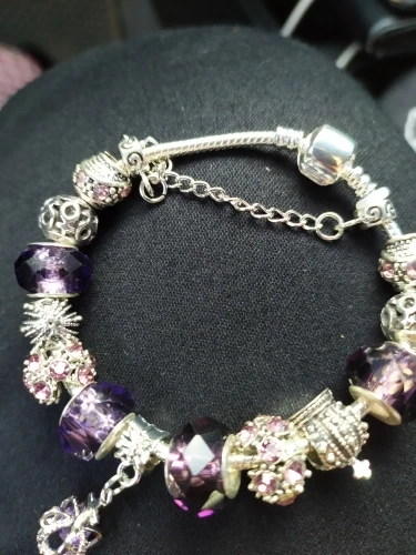 Красивый браслет! Наконец-то в моей руке примерно через 1 месяц (Франция). Я вынул несколько бусин, которые мне не очень нравятся, и добавил очарования, которые у меня есть. Очень доволен этим браслетом. (В застежках имеется надпись «925»). Мое запястье 15 см, и я купил 17 см. Немного слишком свободно для меня, мне нравится довольно туго. Я думаю, что закажу еще один браслет размером 16 см