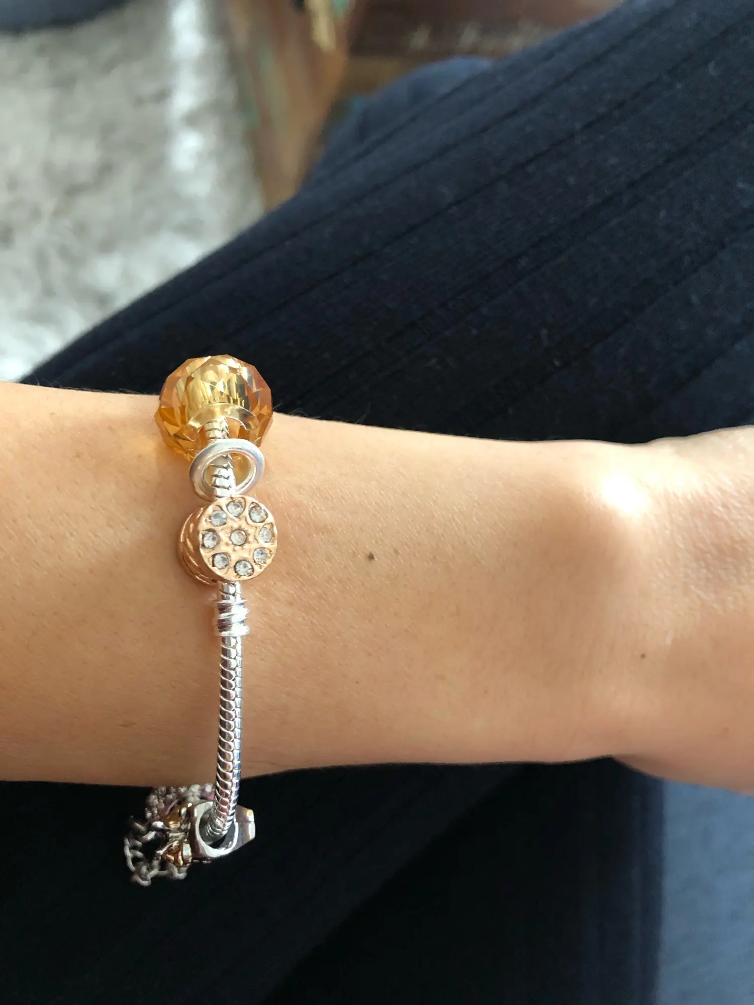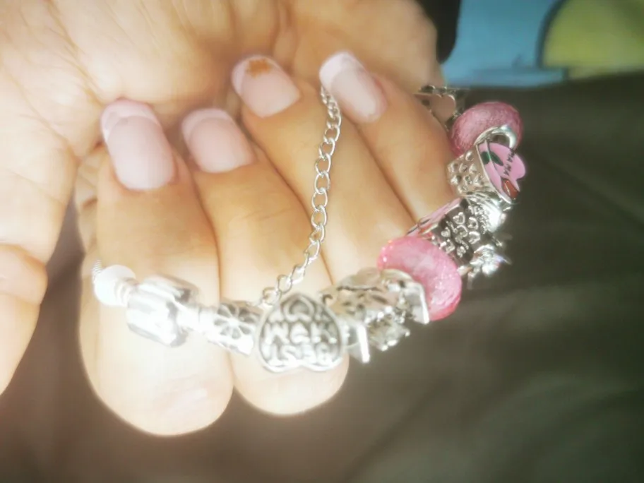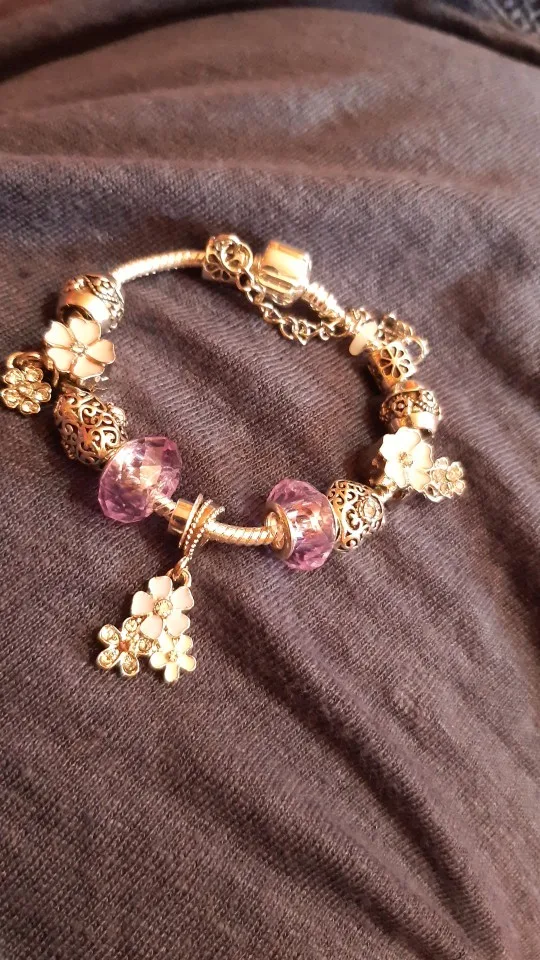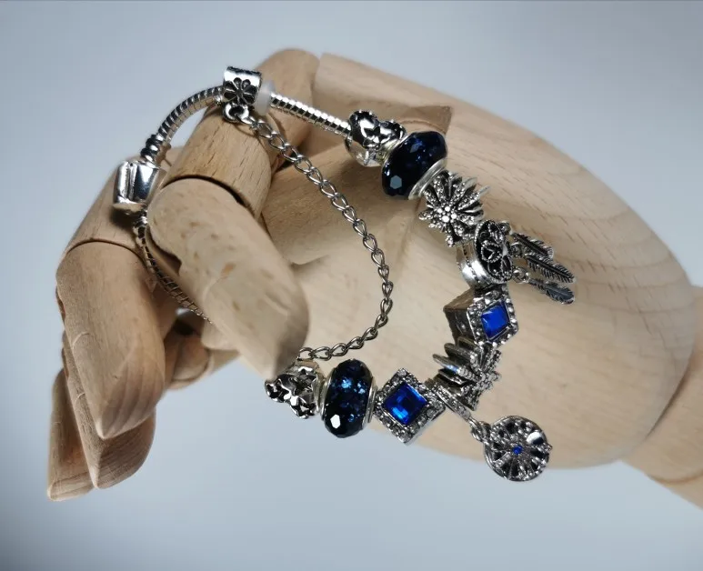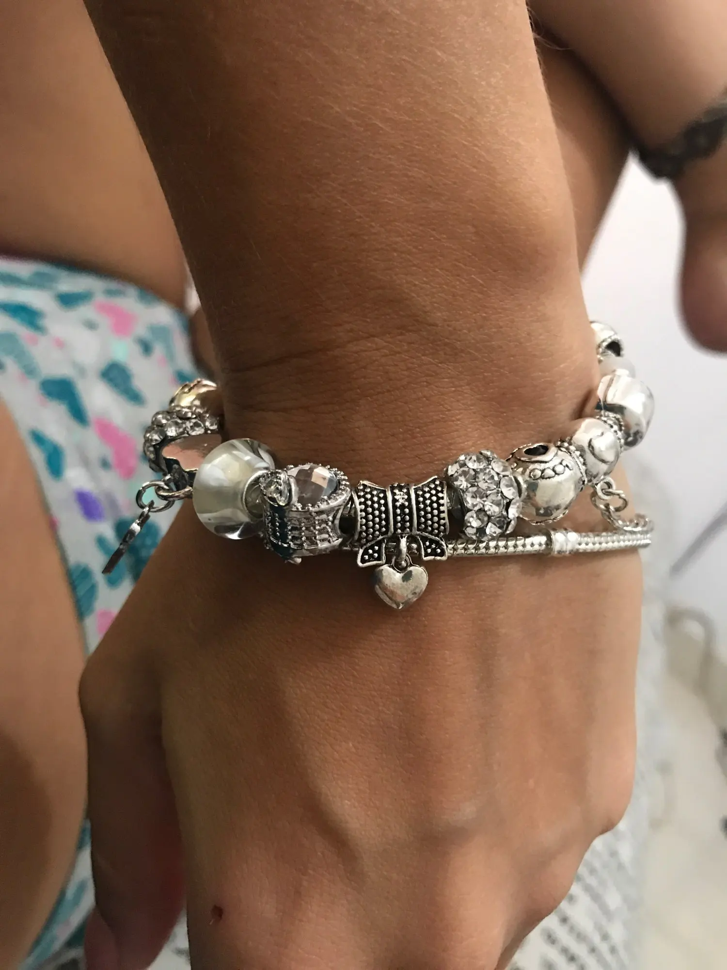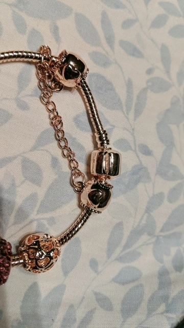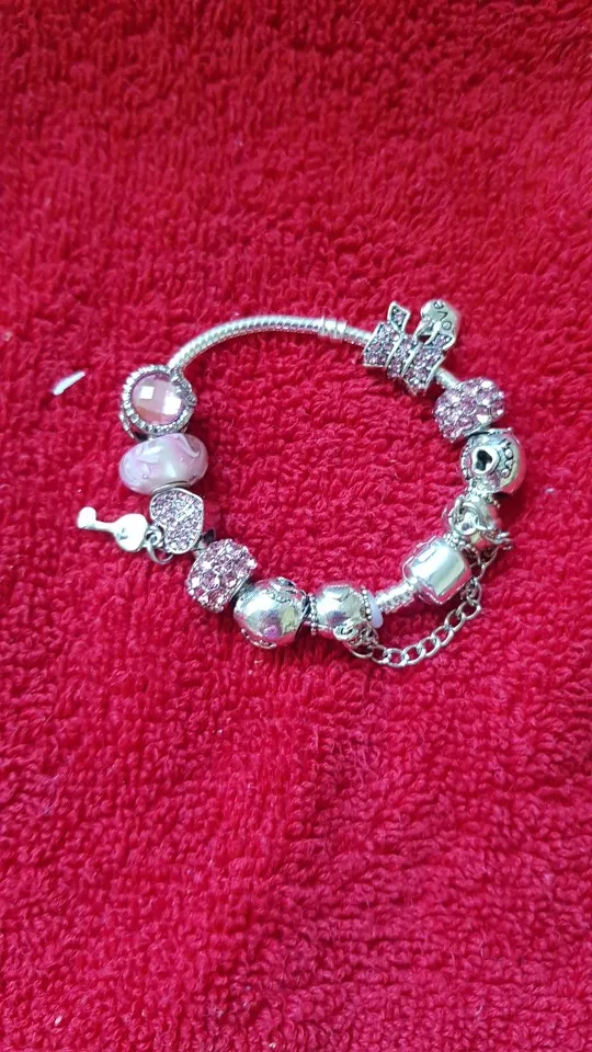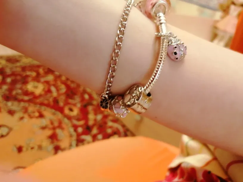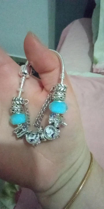 Красивый браслет! Наконец-то в моей руке примерно через 1 месяц (Франция). Я вынул несколько бусин, которые мне не очень нравятся, и добавил очарования, которые у меня есть. Очень доволен этим браслетом. (В застежках имеется надпись «925»). Мое запястье 15 см, и я купил 17 см. Немного слишком свободно для меня, мне нравится довольно туго. Я думаю, что закажу еще один браслет размером 16 см