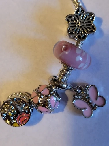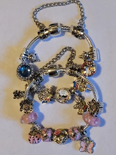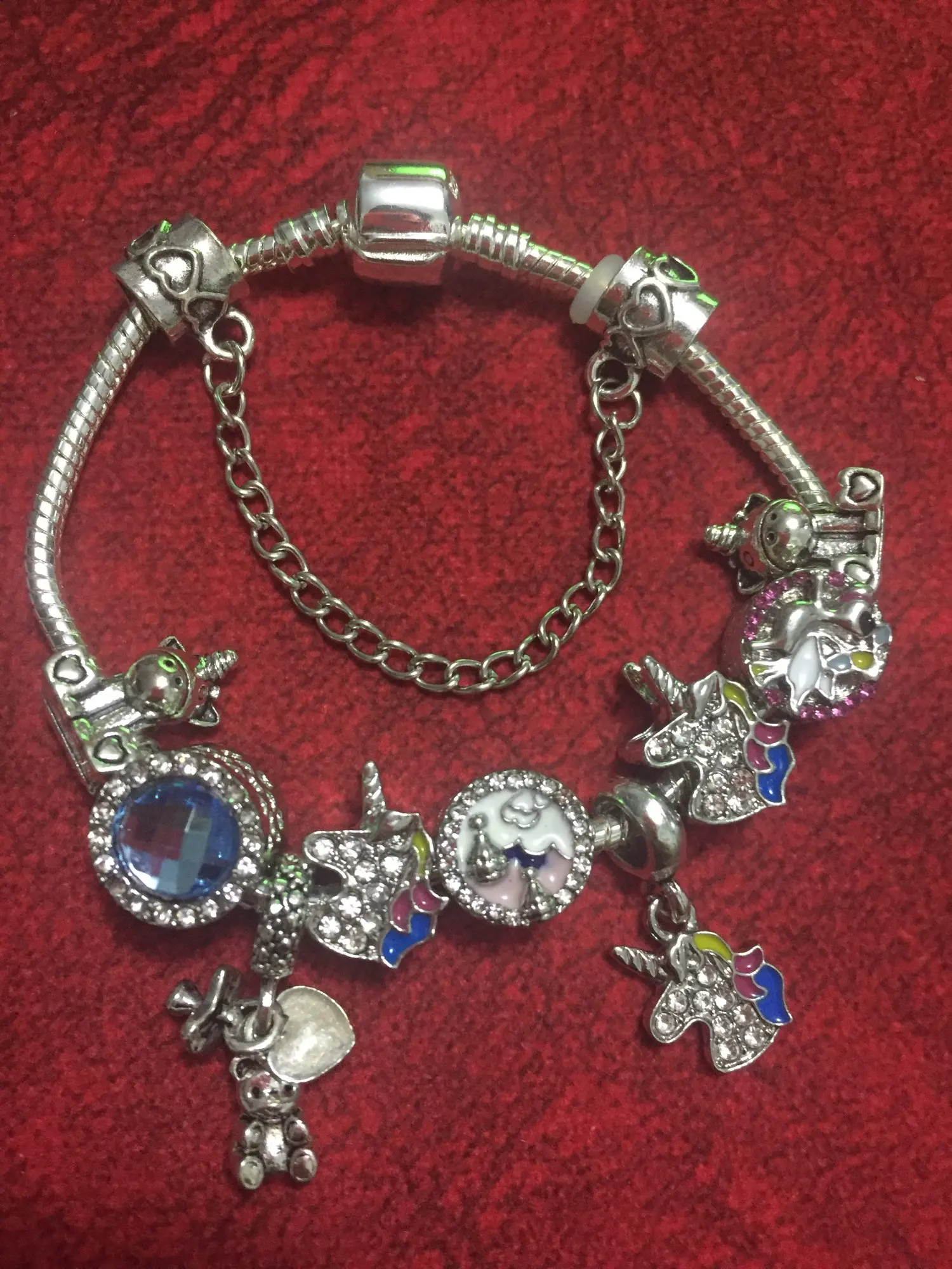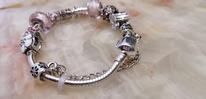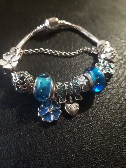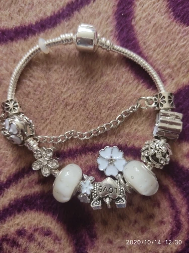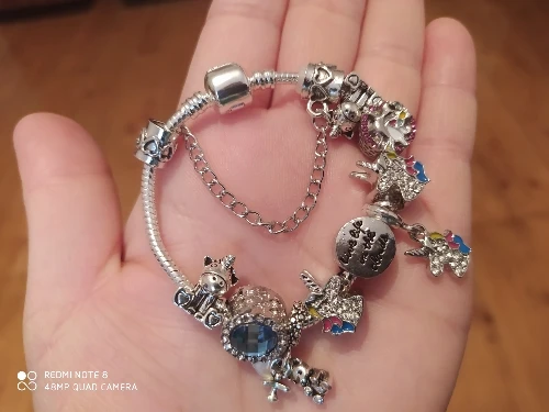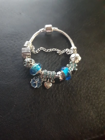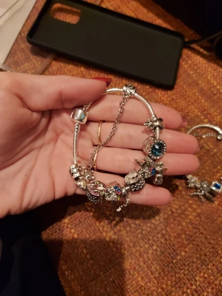 браслет хороший, пришел быстро и отслеживался везде, подвески красивые, сделаны аккуратно, но это точно не серебро и на какую то из них (причем не на все, а только на одну конкретную) у меня началась аллергия, но это не вина продавца, а мои особенности, так что если тоже склонны к аллергии будьте аккуратнее. а так браслет очень хороший, застежка удобная и плотная.