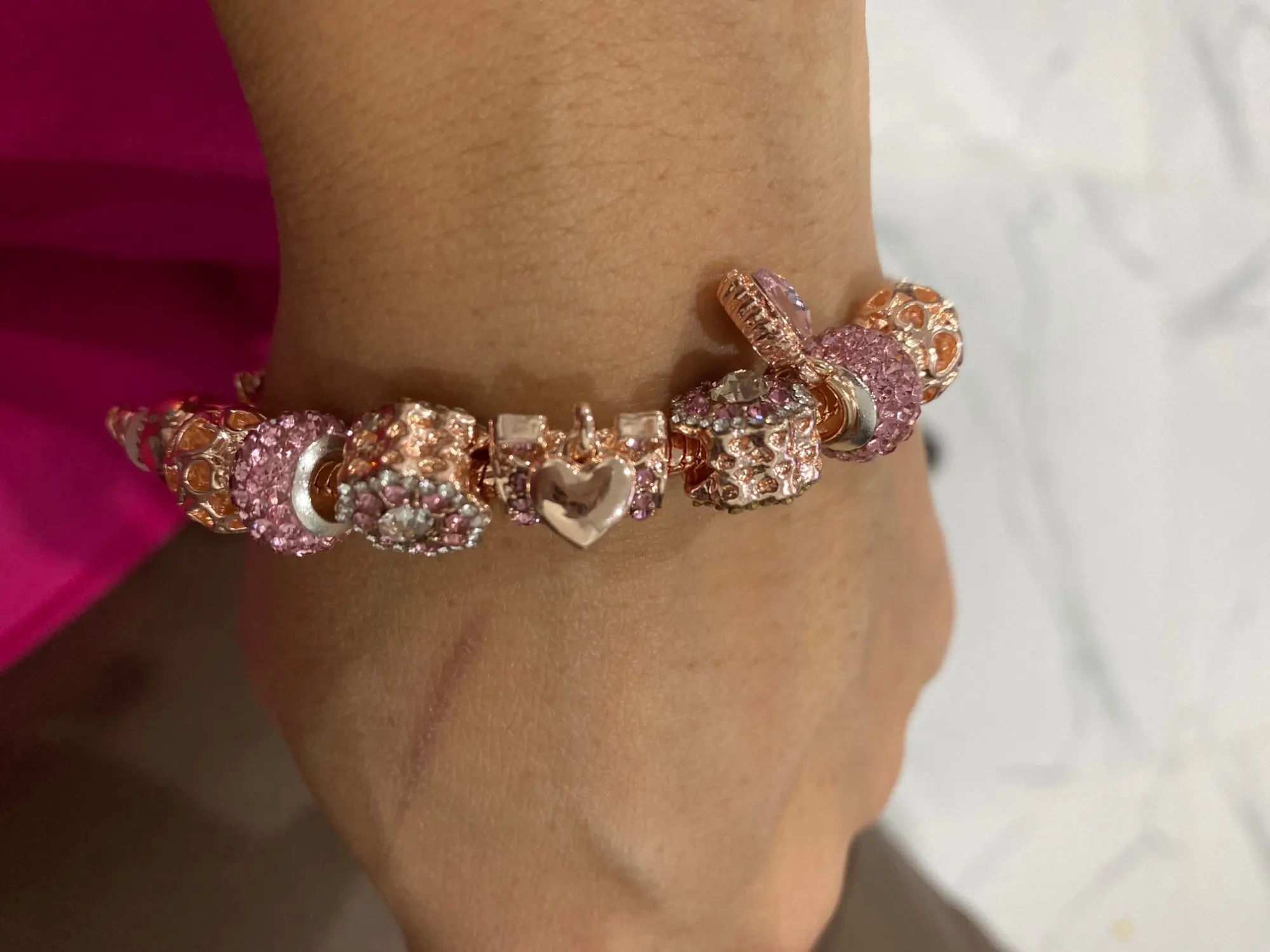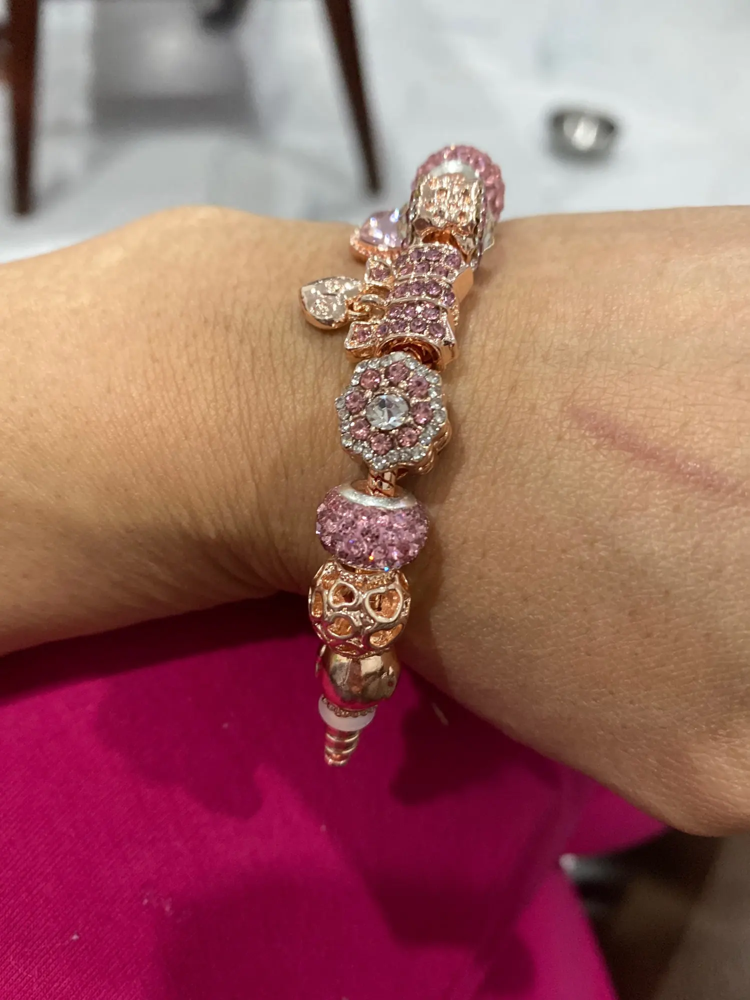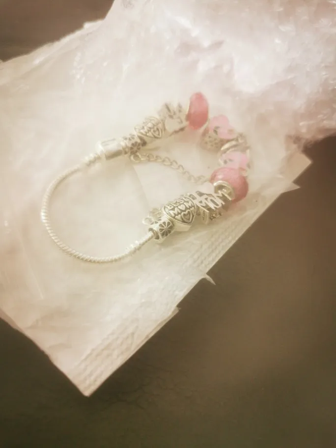 симпатичный браслет, розовый цвет бледнее, чем на картинке, пришел быстро, с продавцом не общалась.