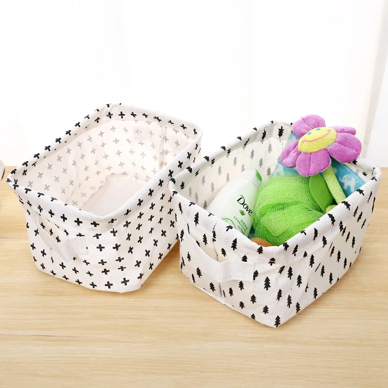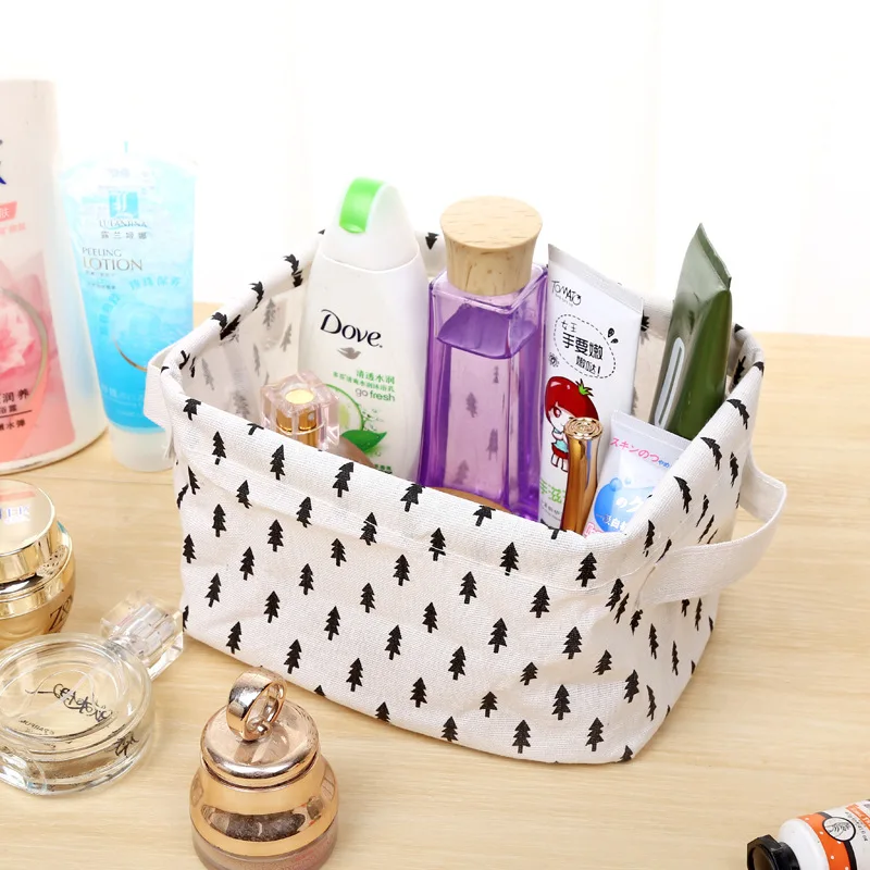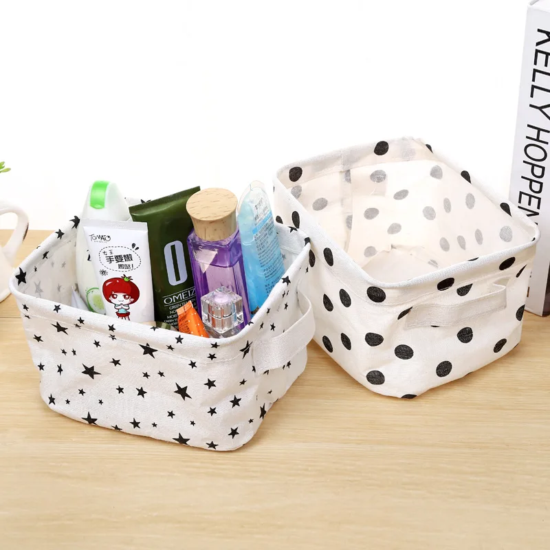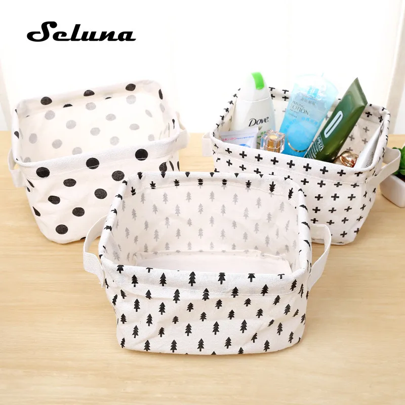 Настольная корзина для хранения Seluna, водонепроницаемый Органайзер с милым принтом, коробка для хранения мелочей из хлопка и льна, сумка для хранения нижнего белья