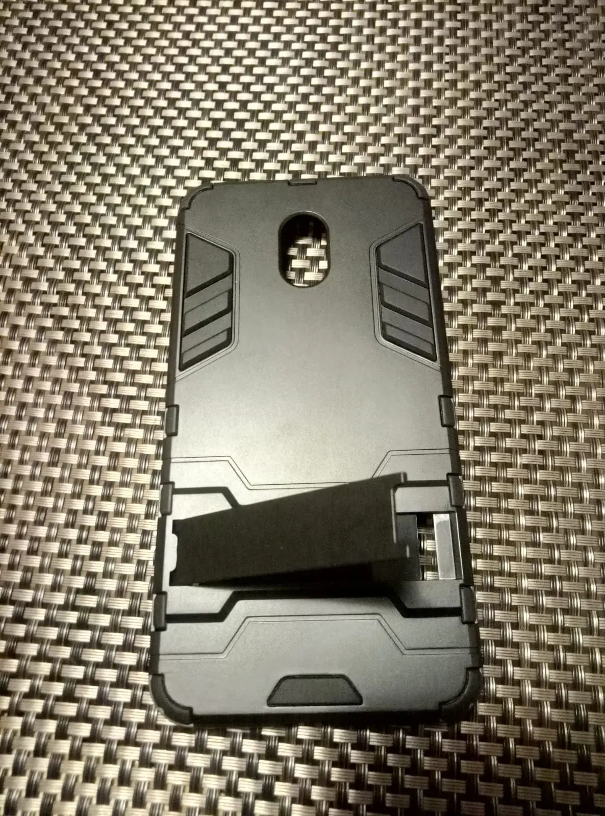 Просто обалденный брутальный чехол с рёбрами жёсткости, реально защищающий, не знаю, зачем сзади ножка, не знаю, кто так телефон смотрит горизонтально? Цена вдвое завышена конечно, но чехол добротный и один из немногих, где кнопки и чувствуются под пальцами и нажимаются не сильно жёстко и не мягко, как надо.
