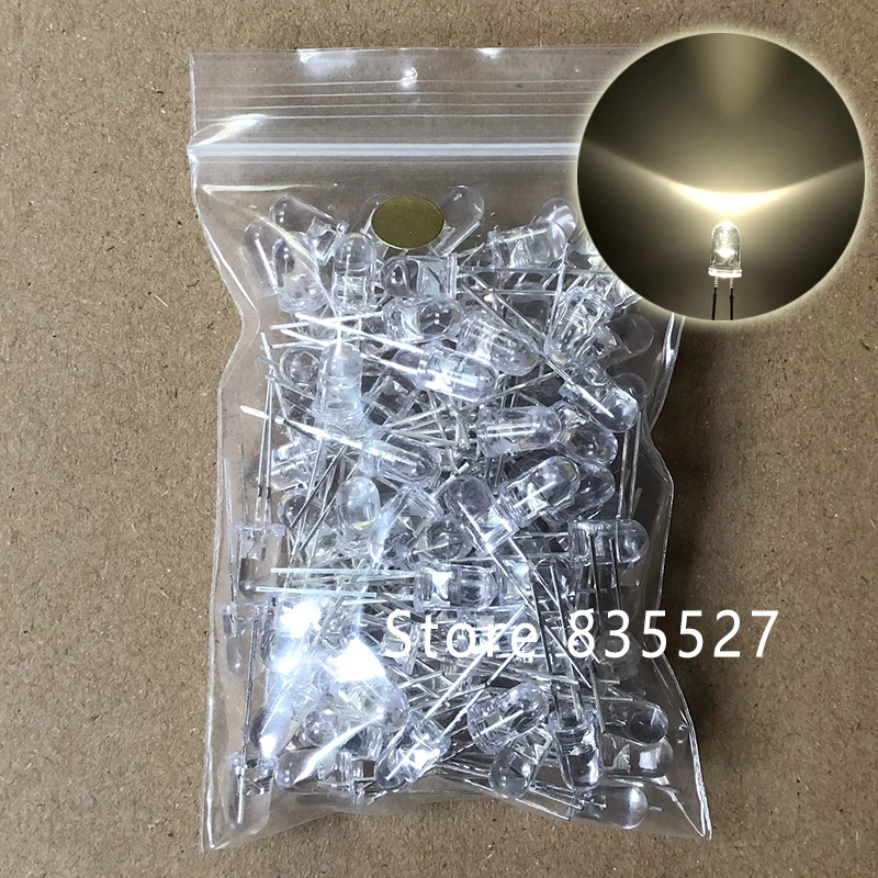 100 шт.лот, 5 мм, Круглый Светодиод F5, теплый белый и прозрачный, супер яркий светодиод, набор диодов, диодные лампы