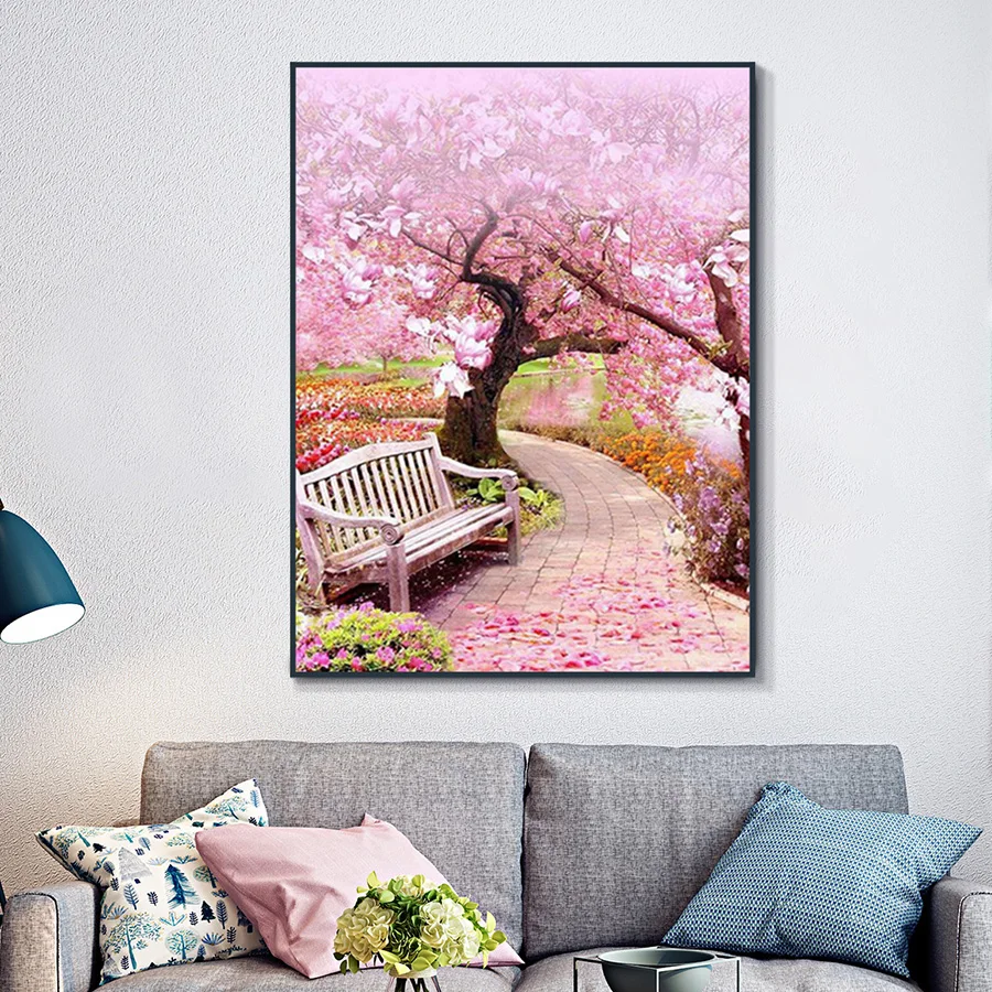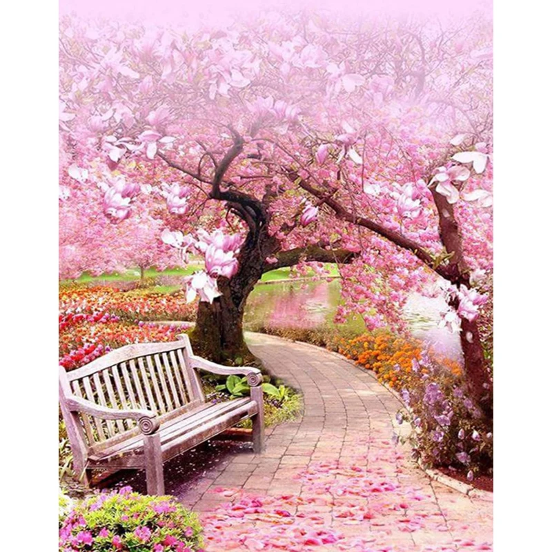 Полный 5D Diy Daimond картина "Вишня в цвету Street 3D алмазов картина круглые стразы Diamant живопись вышивка пейзажа