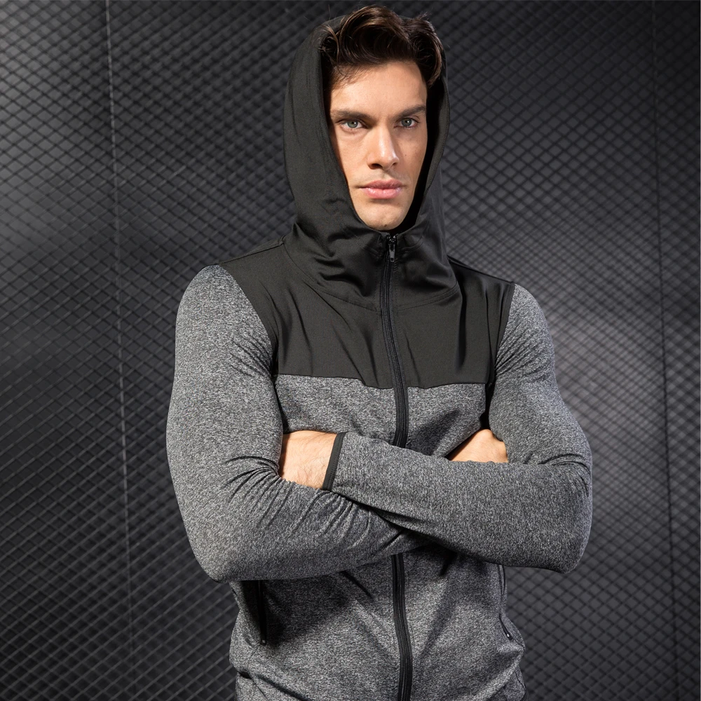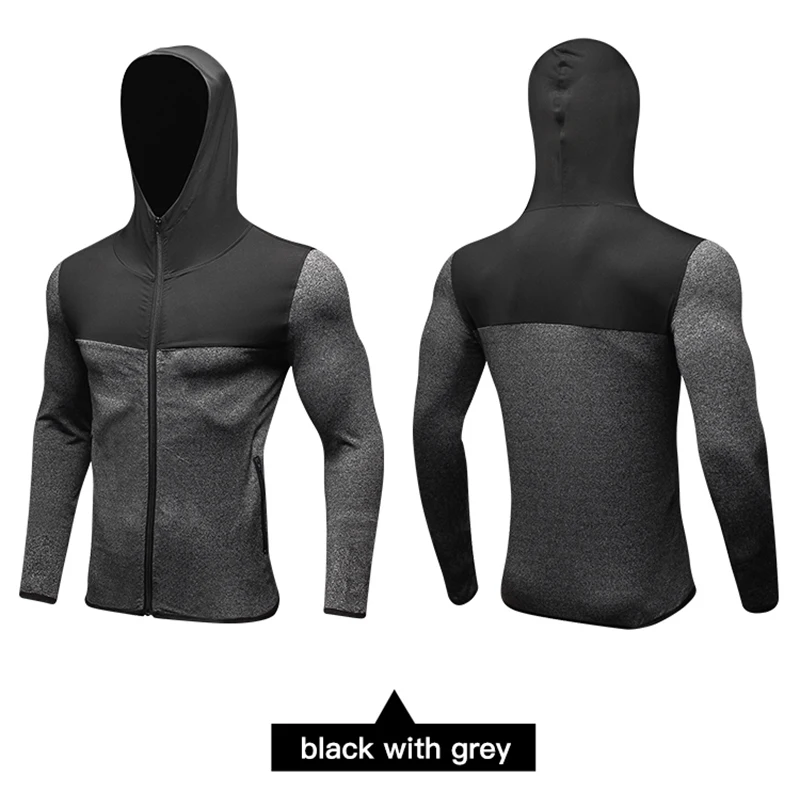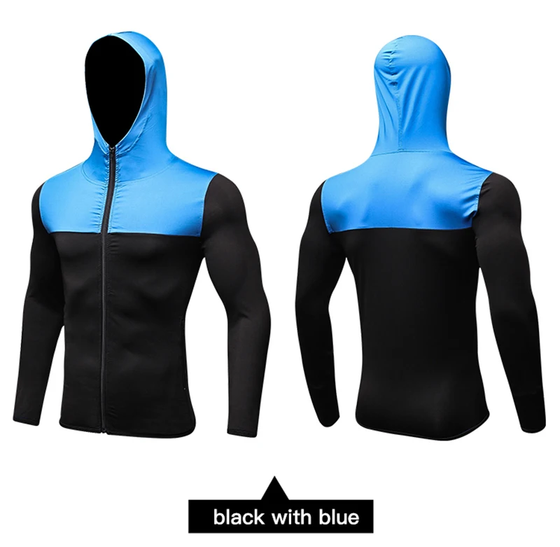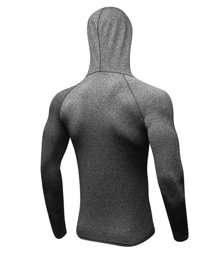 Футболка мужская компрессионная, модная рубашка для фитнеса и бодибилдинга, тренировочные свитера с длинным рукавом и шапками, топы для мужчин
