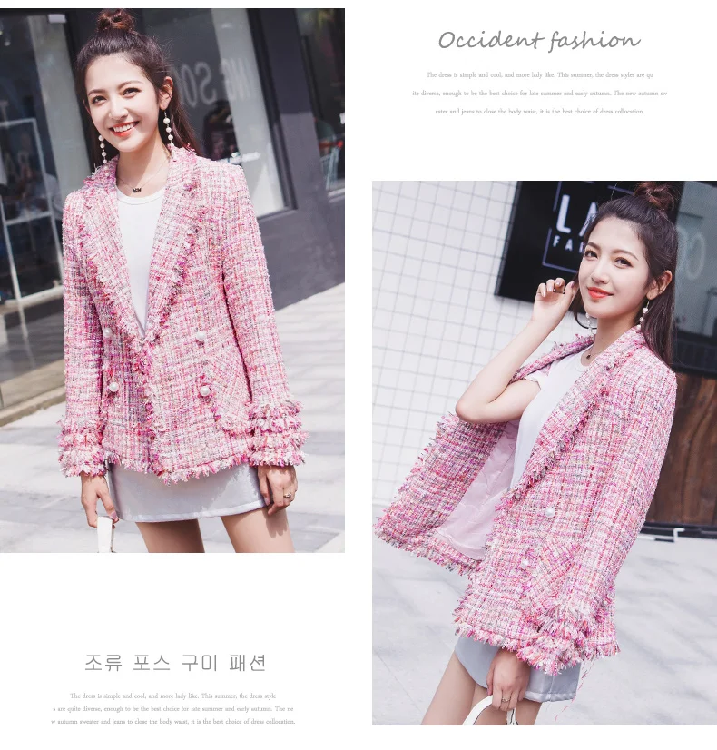 Розовая твидовая куртка с бусинами, пальто с длинным рукавом, Осень-зима 2020, Женское пальто, костюм, женское светское пальто