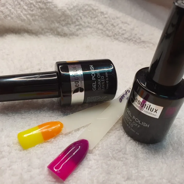 доставка быстрая, меньше месяца...лаки плотные и хорошо пигментированые...можно и в один слой красить...уже пользовалась гелями этой фирмы, очень нравятся,решила попробовать термо...есть некоторая путаница на картинке у продавца,думала заказала розовый,а получила серый,но не страшно,я всё равно довольна