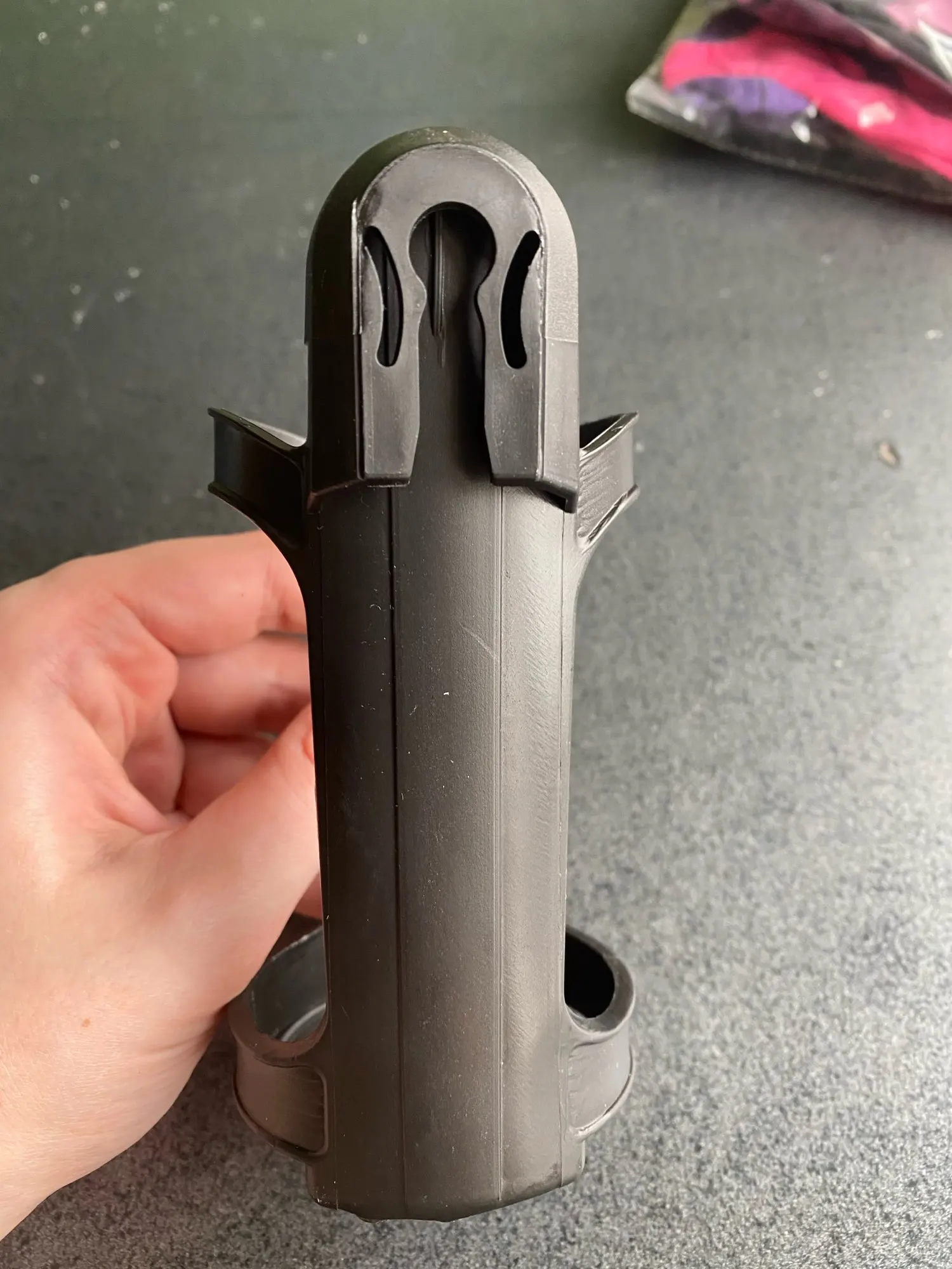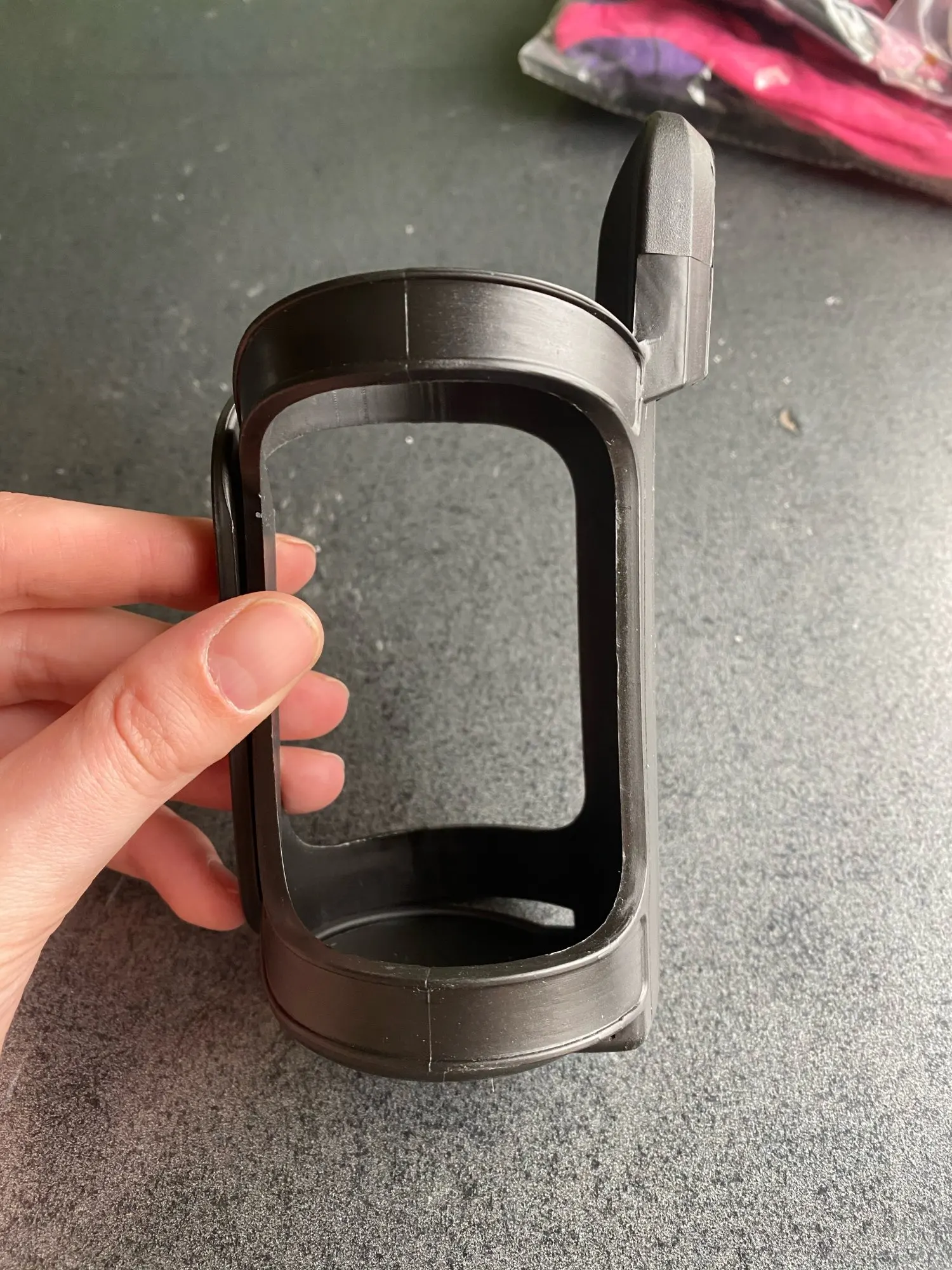 Кріплення підходить лише для продовгутих бутилочок. Така штука як стакан кави, більш конусоподібної форми туди влазить не зручно