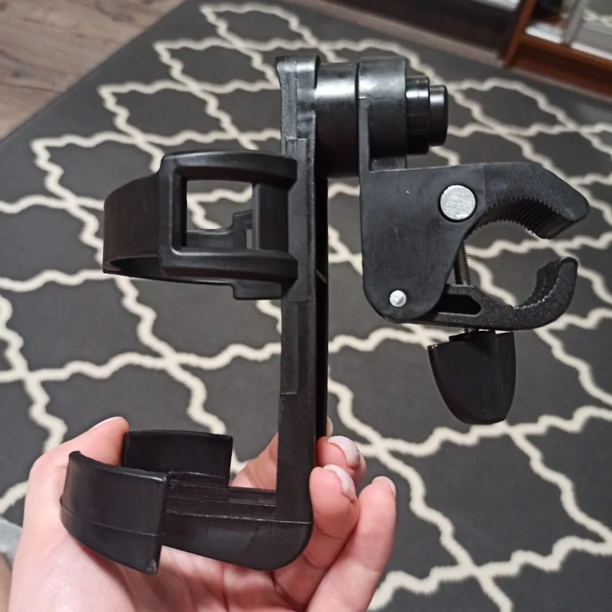 Идеальный подстаканник! Специально искала такой, чтобы в нём уместился стакан кофе)) Фактически, сюда вмещается всё. Очень удобное крепление, можно прикрепить на коляску как угодно, под любым углом. Пластик довольно хрупкий, но при этом, к моему удивлению, при соприкосновения со стенами или другими препятствиями целый и невредимый, хотя специально на прочность я бы не стала проверять.