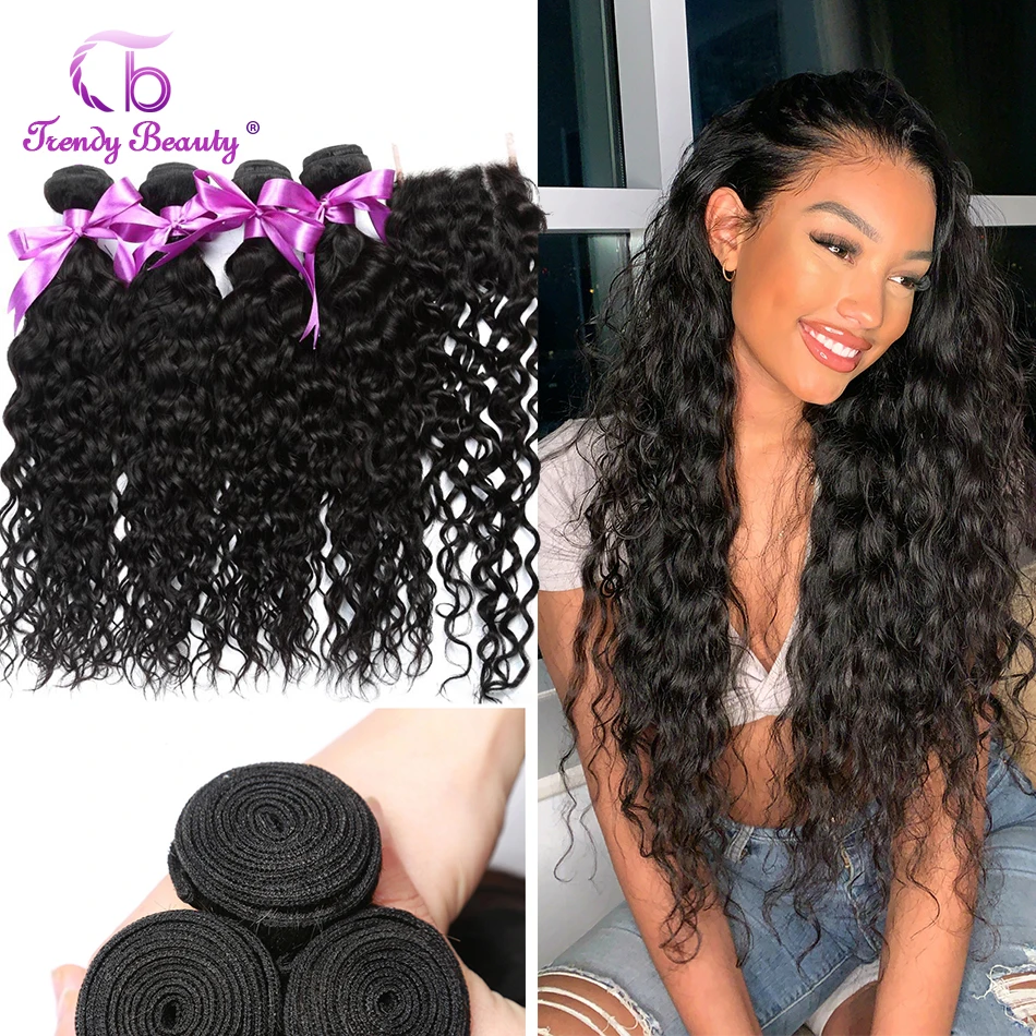 Hair Style:Brazilian Water Wave Hair Bundles with Lace Closure