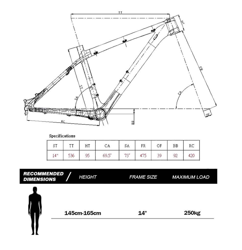 2021 новые китайские карбоновые рамы BXT 14 дюймов 26 углерод набор рамок для горных велосипедов супер светильник Детские Углеродные рамы для горного велосипеда 26er