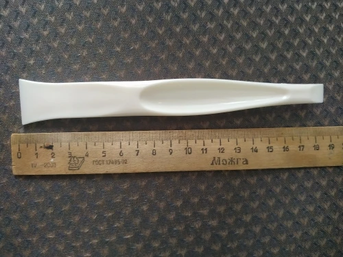 Лопатка твёрдая, не гнется. Выглядит качественно. В деле ещё не пробовала.