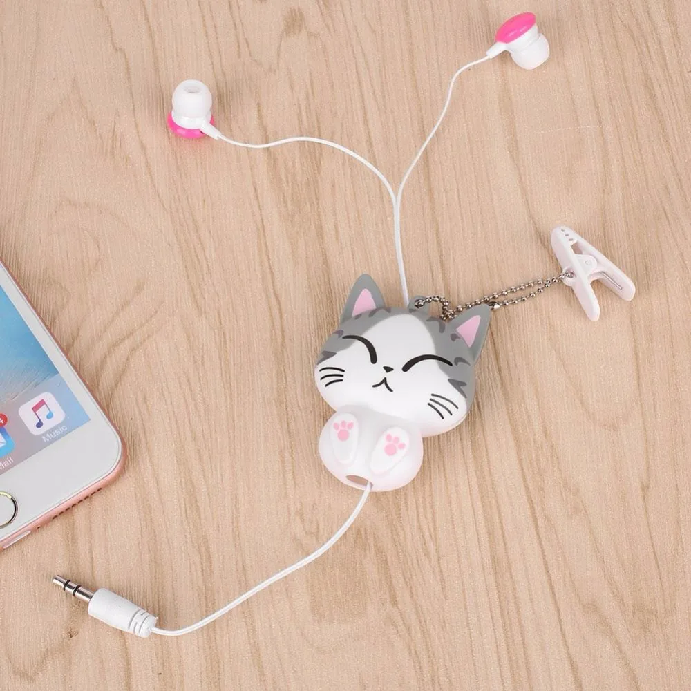 Проводная Выдвижная гарнитура-ушанка 3,5 мм с мультяшным котом и аниме, клипсы для наушников, гарнитура для iphone 6 6s 7s Samsung Xiaomi MP3