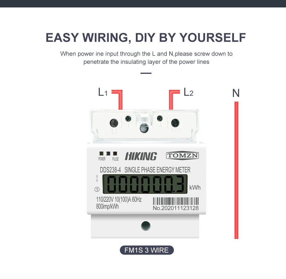 Однофазный трехпроводной Din-рейка, 100 В110 В, 60 Гц, кВтч, ватт-час, din-рейка, счетчик энергии, ЖК-дисплей для Америки, 10 (220)