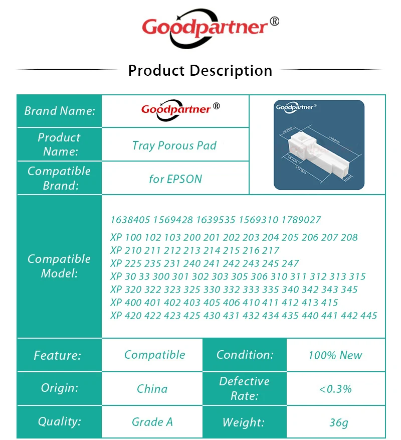 1X лоток пористая подкладка для EPSON XP 100 102 103 200 201 202 203 204 205 206 207 208 210 211 212 213 214 215 216 217 225 235 231 240