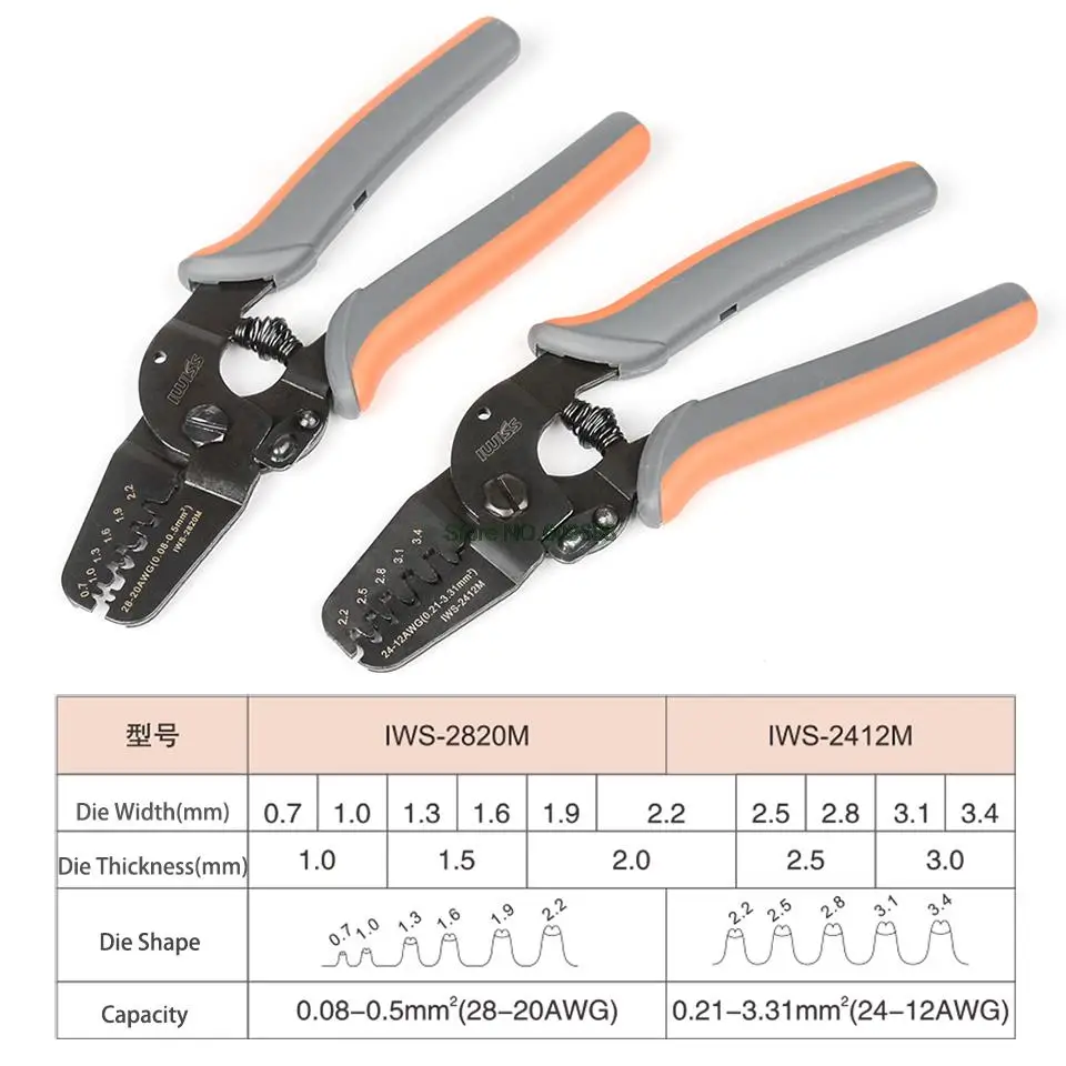 Мини-Обжимные Щипцы IWISS с открытым цилиндром, щипцы для клемм 28-20AWG, Molex, Tyco, JST клемм и разъемов