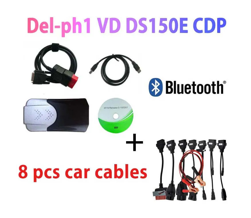 Диагностический инструмент 2017.R3, с новым генератором ключей VD DS150E, CDP, bluetooth, для автомобиля, грузовика, автомобиля, сканера obd2, инструменты + 8 автомобильных кабелей