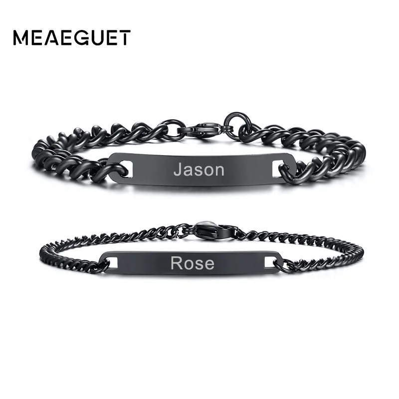 Бесплатная гравировка, пара браслетов, браслеты из нержавеющей стали, ручная цепочка для женщин и мужчин, персонализированные уникальные ювелирные изделия для любви