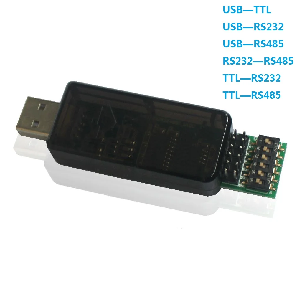 Изменяя физические переключатели, выполняющие функцию преобразования USB, TTL, 232, 485 друг в друга