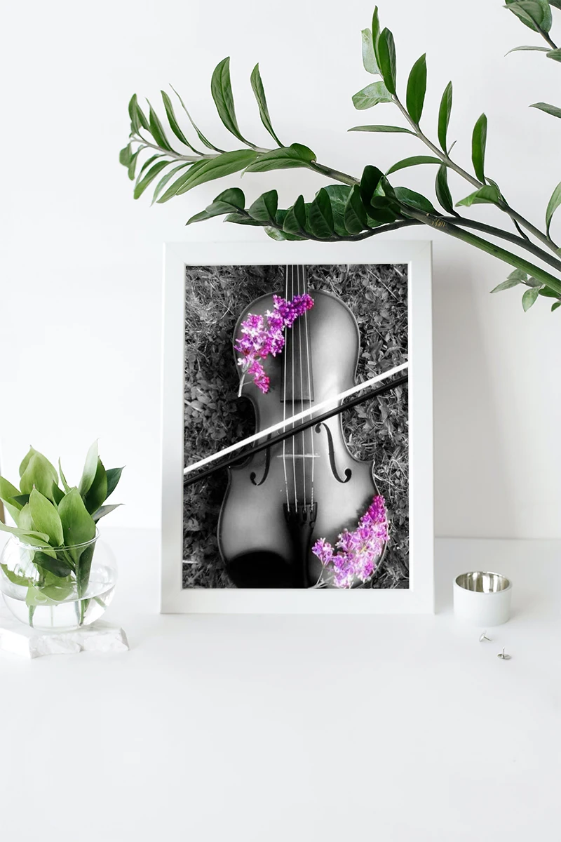 Алмазная 5D картина сделай сам, полностью покрытая стразами, 3D картина Скрипка и Лаванда, круглая Алмазная картина стразы, вышивка, Декор, 100%