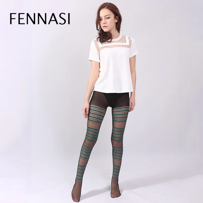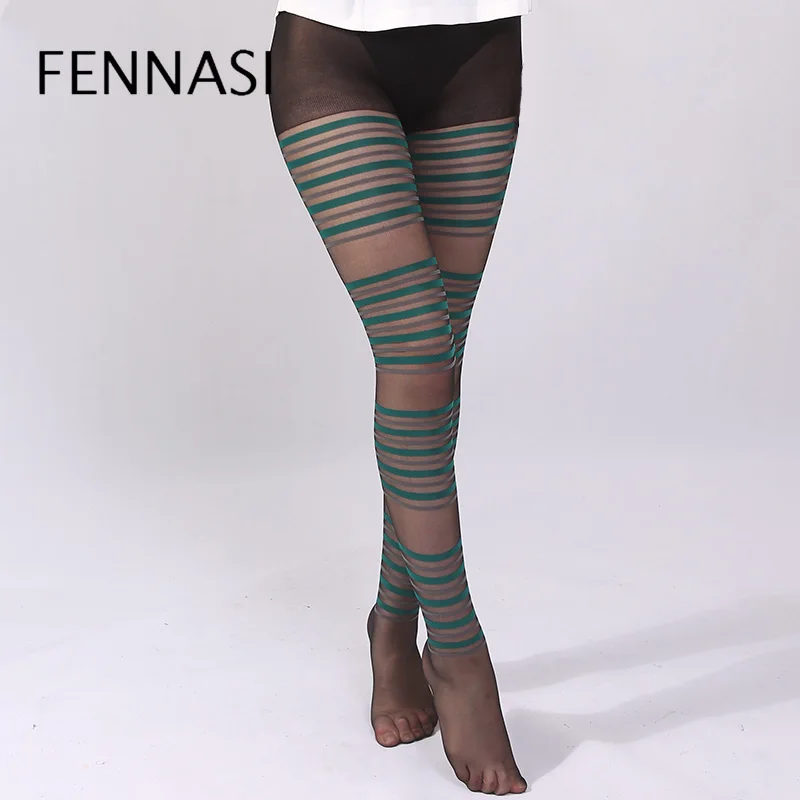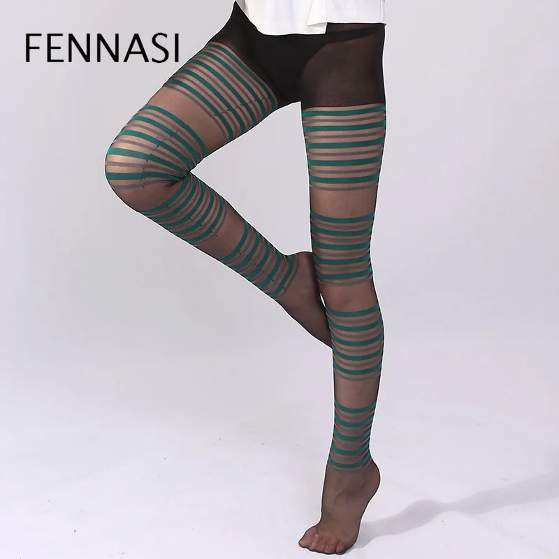 FENNASI Женские Жаккардовые полосатые женские колготки Зеленые Серые полосатые узорные пикантные колготки нейлоновые женские эротические черные колготки