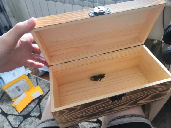 Заказ пришел быстро достаточно, за пару недель. Отлично пахнет деревом. Не тяжелая, сказала бы, что даже очень легкая. Заказывала 2 одинаковых сундука. На одном из них крышка не плотно прилегает, есть зазор. На втором небольшая потертость лако-красочного покрытия. И самое главное писала продавцу, что бы не отправляли крепление замка в виде бабочки (посмотрев отзывы). Но мое сообщение было проигнорировано. В итоге, открыла спор. Продавец компенсировал часть затрат. Поэтому, так скажем, конфликт исчерпан. Будем ими пользоваться)) Стоит отметить, что посылка была очень качественно упакована, что бы избежать повреждения во время транспортировки. И это здорово! Замочки лежали внутри. Они конечно очень хлипкие, но есть))