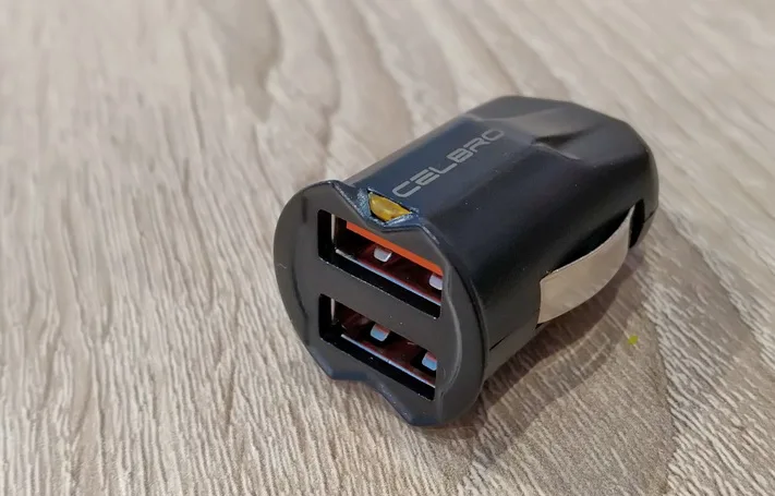 Удобное зарядное устройство не торчит из гнезда прикуривателя, есть светодиод оранжевый