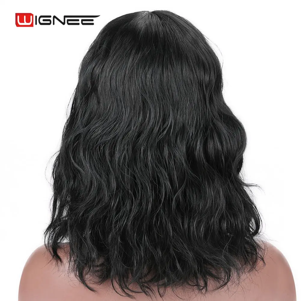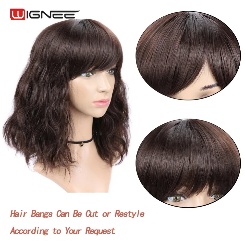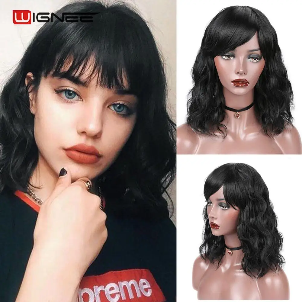 Wignee синтетические парики с челкой для черных и белых женщин короткие натуральные волнистые волосы термостойкие косплей повседневные волосы из волокна