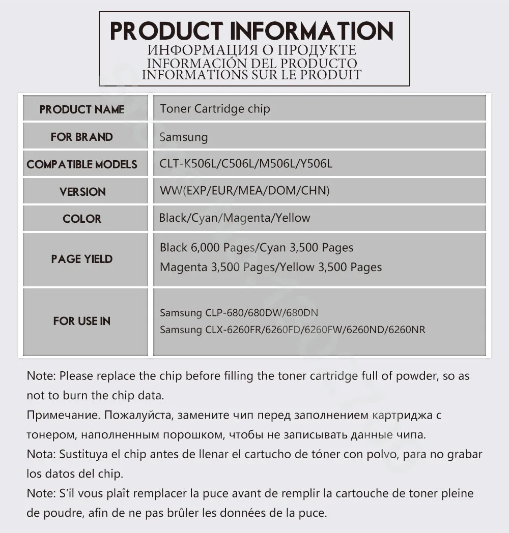 6 K3,5 K CLT-K506L CLT-506L KCMY чип тонер-картриджа для samsung CL...