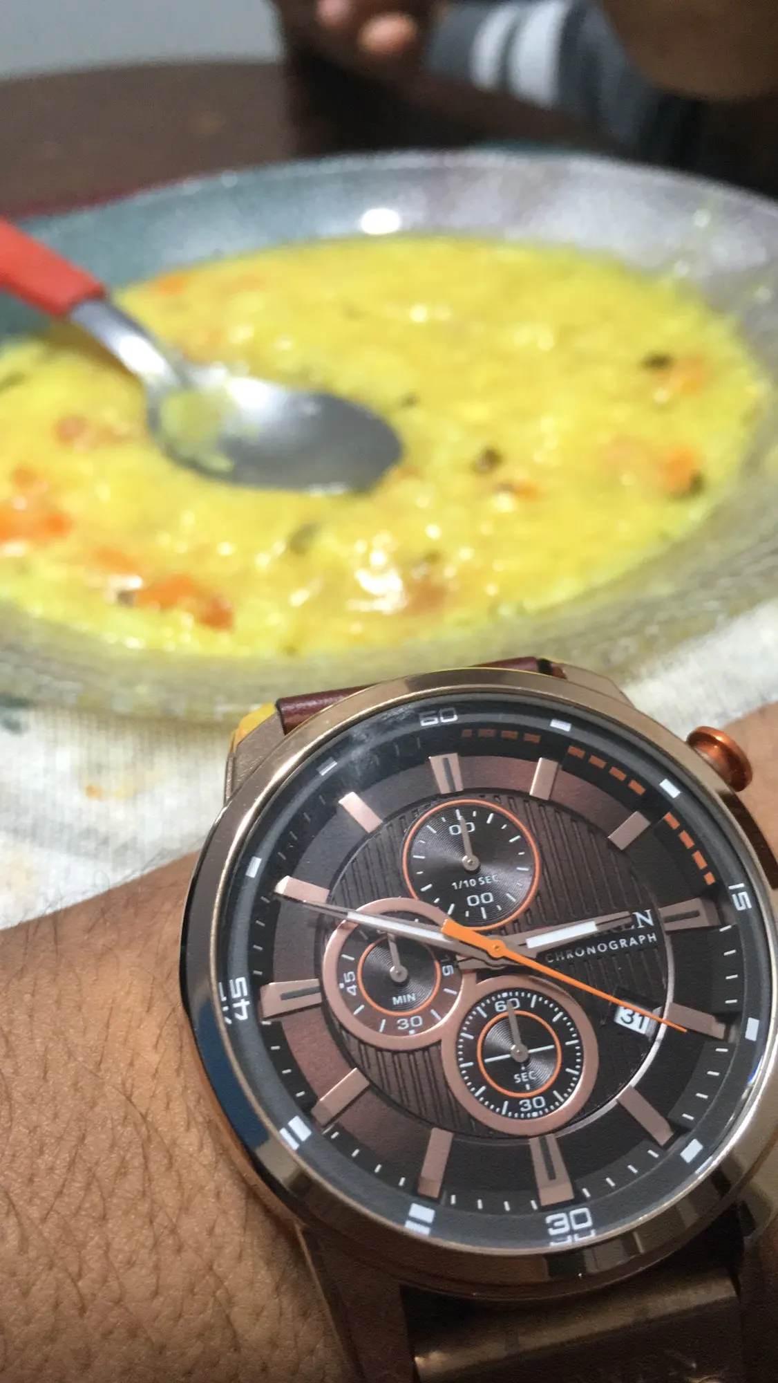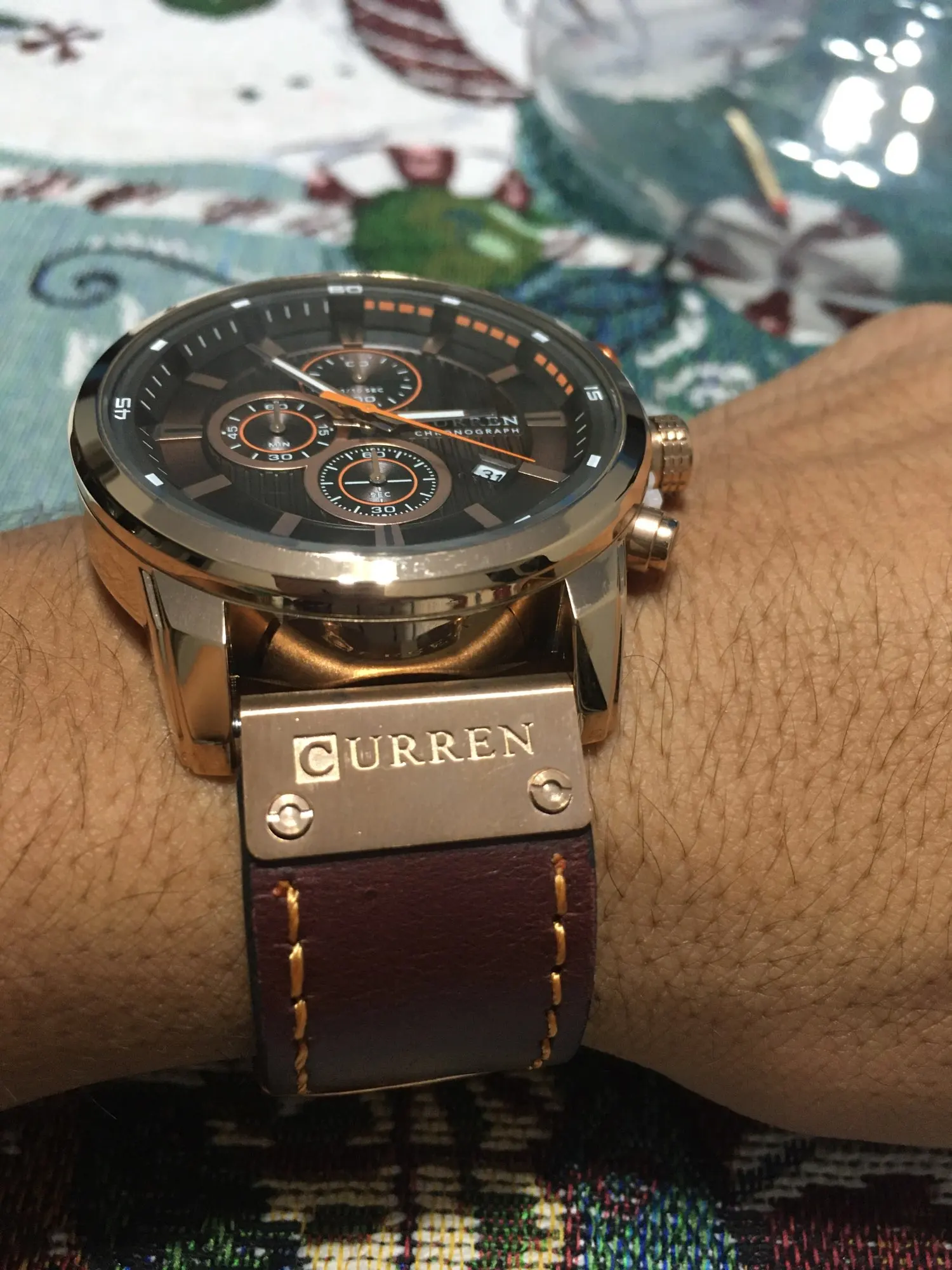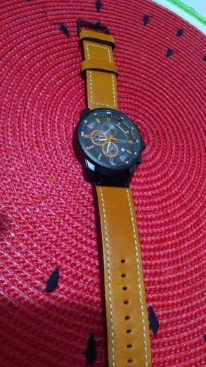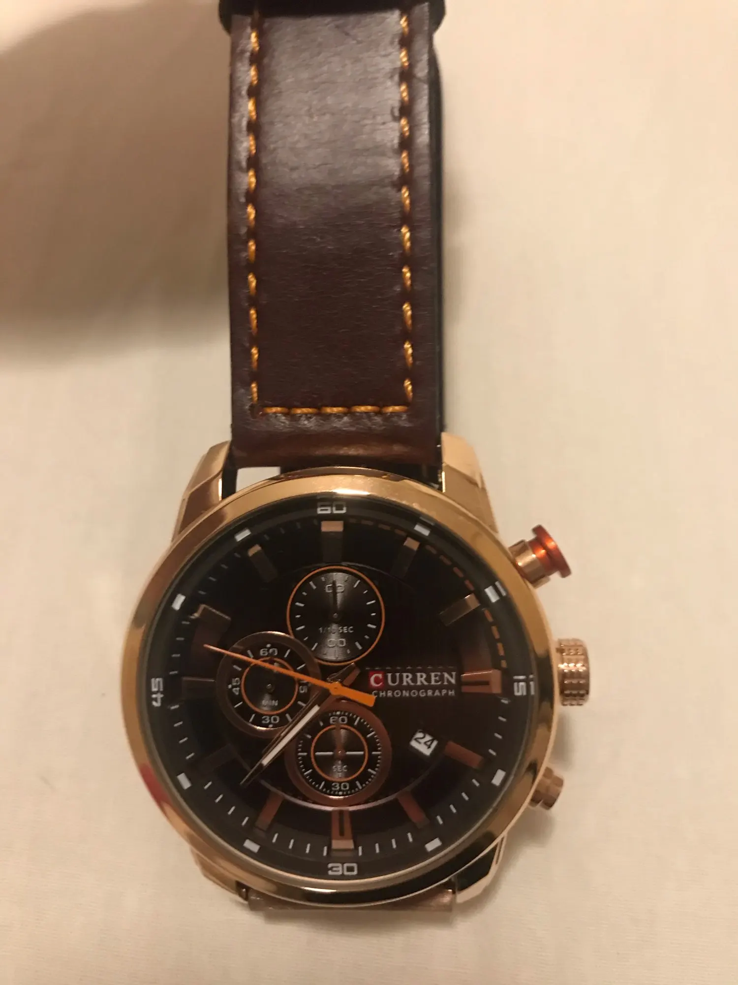 Часы, как рекламируется продавцом. Кроме того, он очень хорошо отделан, а качество материалов, используемых в его строительстве, очень хорошее. Все циферблаты хронографа работают. Я рекомендую этот продукт и продавца, так как доставка была очень быстрой.